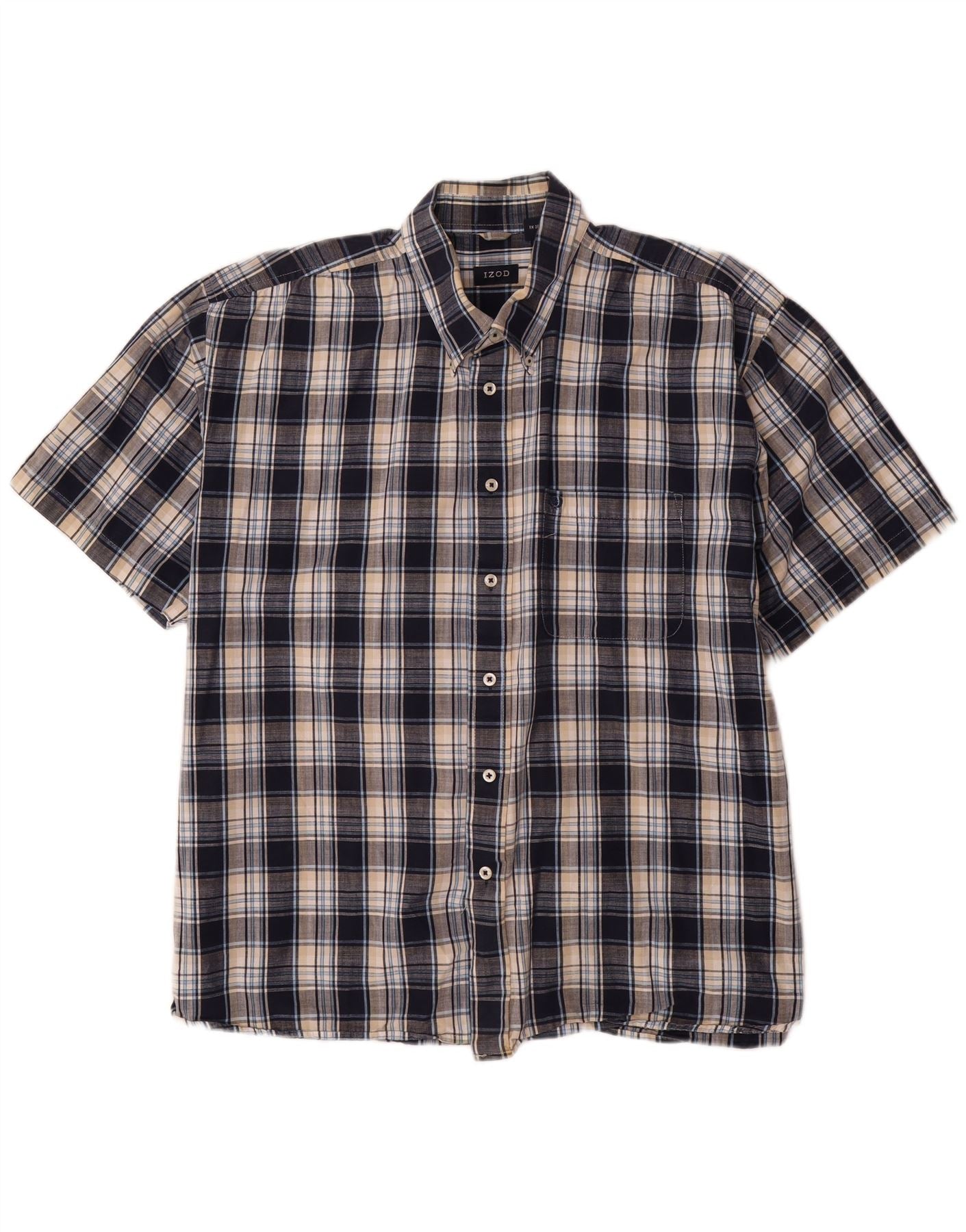 Camisa masculina de manga curta IZOD XL azul marinho xadrez algodão