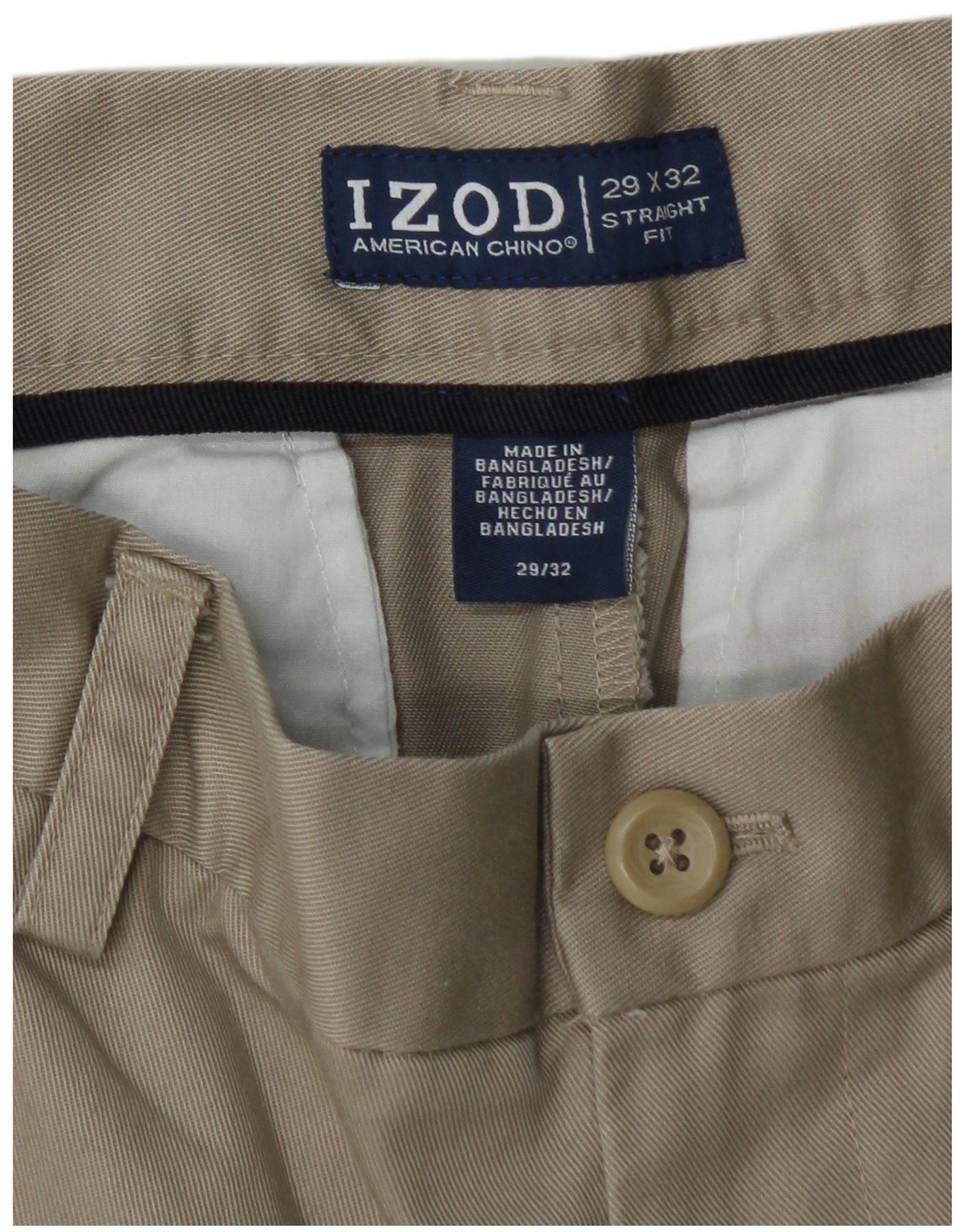 Calça chino reta masculina IZOD W29 L32 algodão bege