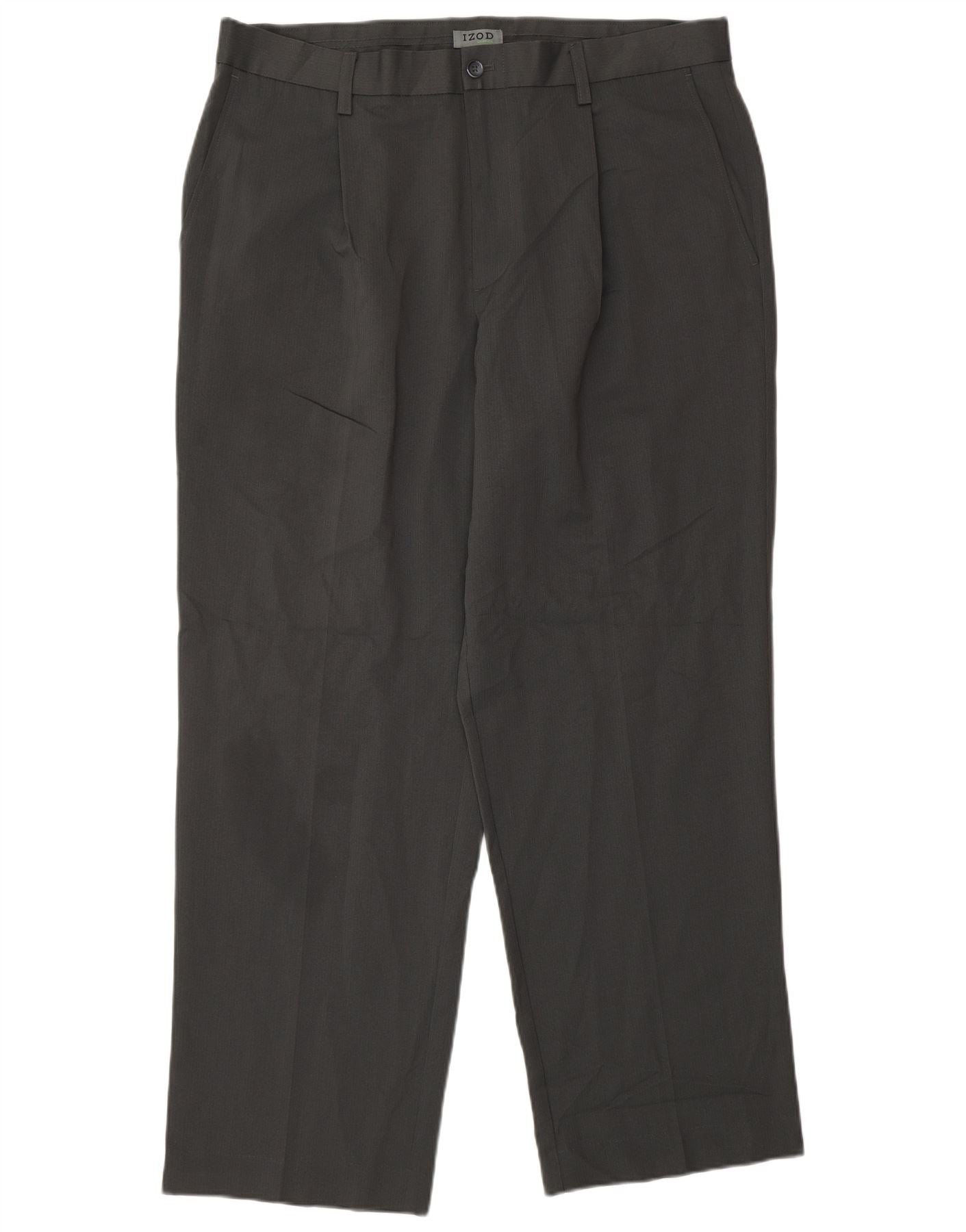 Calça masculina Izod de terno reto W36 L30 poliéster cinza