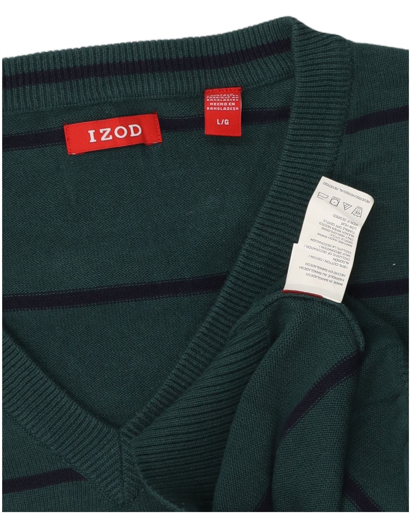 Suéter masculino IZOD com decote em V, grande algodão listrado verde
