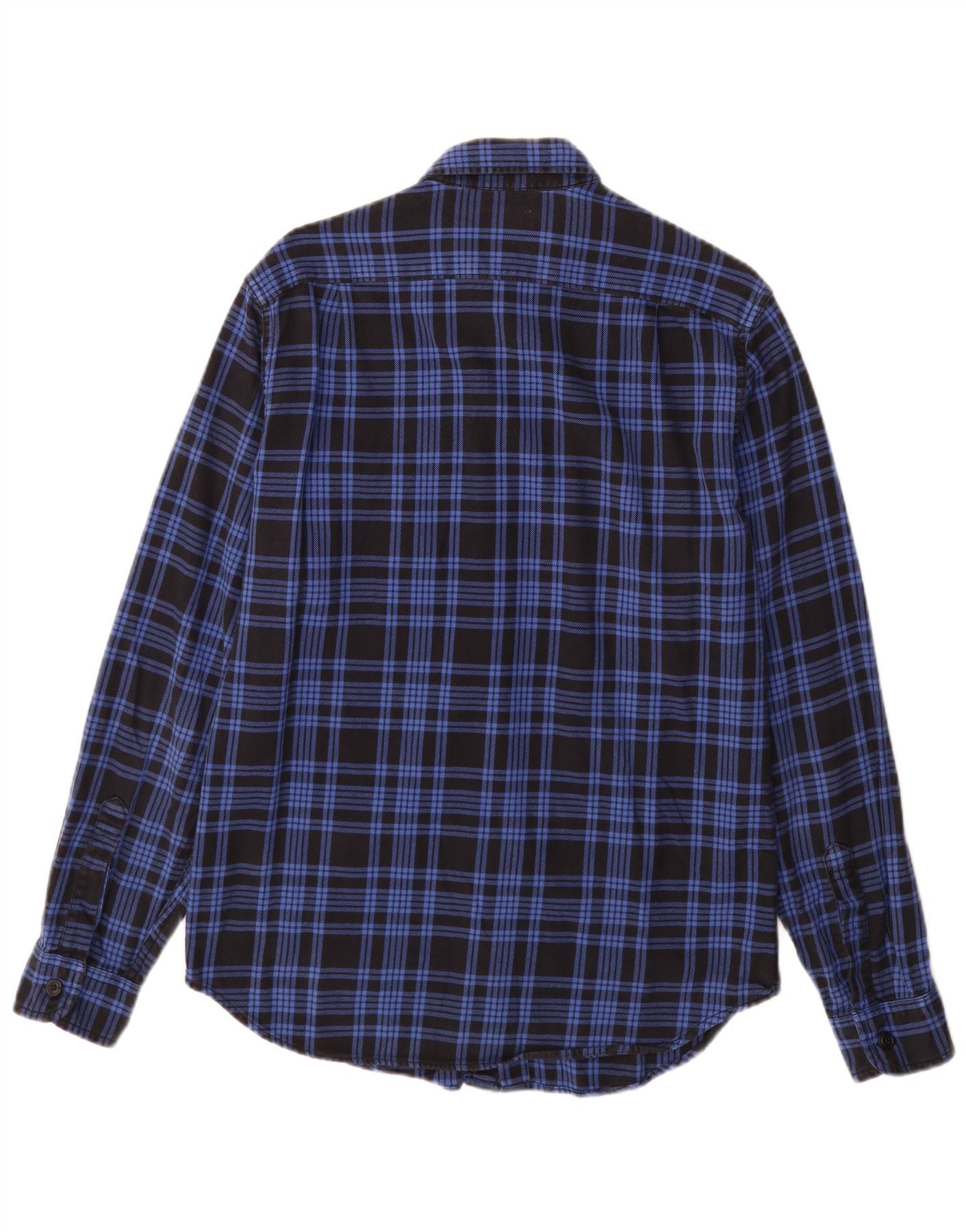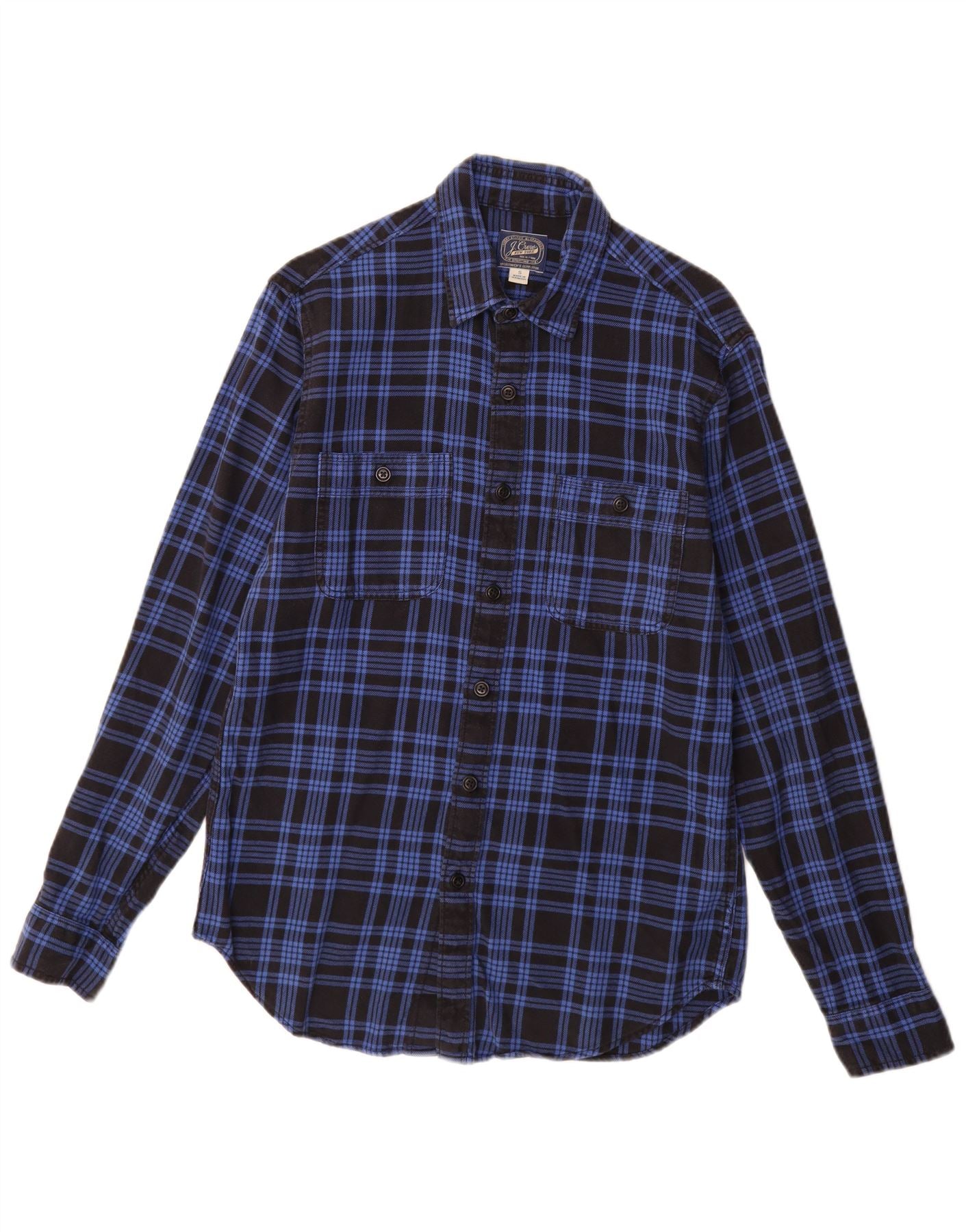 Camisa masculina de flanela J. CREW pequena azul xadrez de algodão