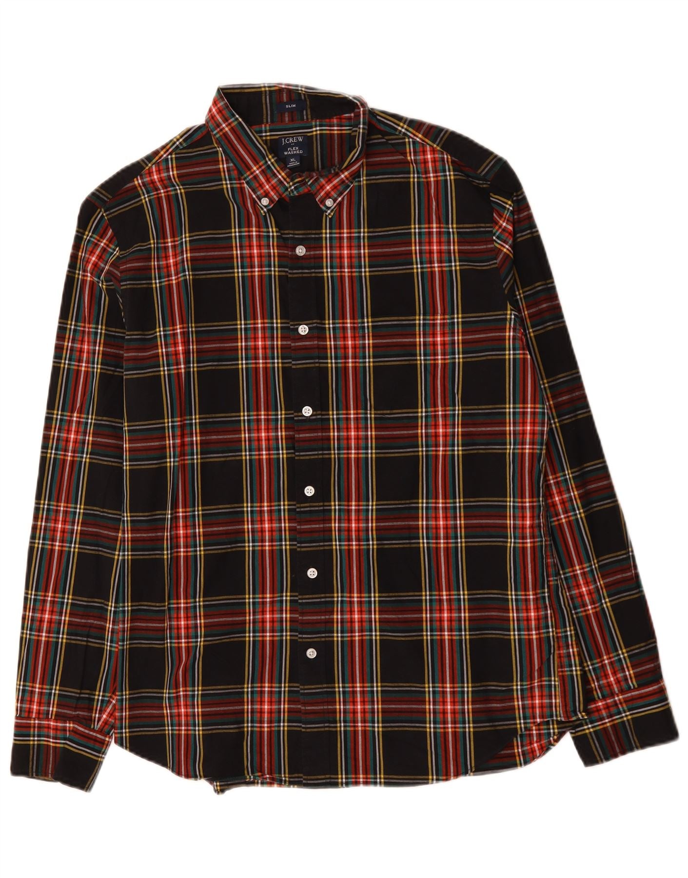 Camisa masculina J. CREW Flex Washed Slim Fit XL de algodão xadrez preto