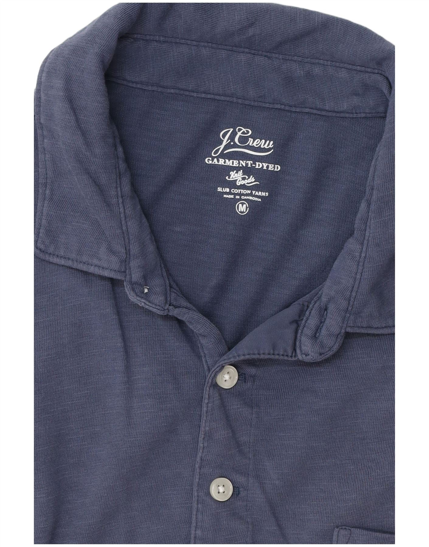 - Descrição da IA: Esta camisa pólo masculina J. Crew é confeccionada em jersey de algodão azul suave. O acabamento tingido da roupa confere uma textura sutil e viva. Possui decote clássico com gola e carcela de três botões. Mangas curtas e ajuste regular garantem um uso confortável. Um único bolso no peito adiciona um detalhe prático e casual.
