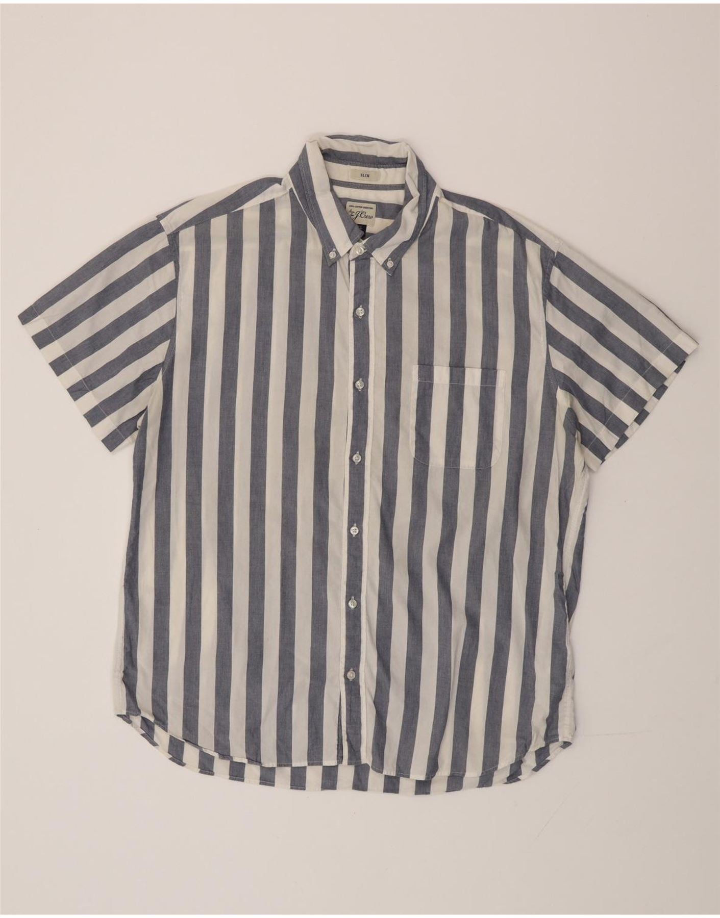J. CREW Camisa masculina slim de manga curta XL algodão listrado azul