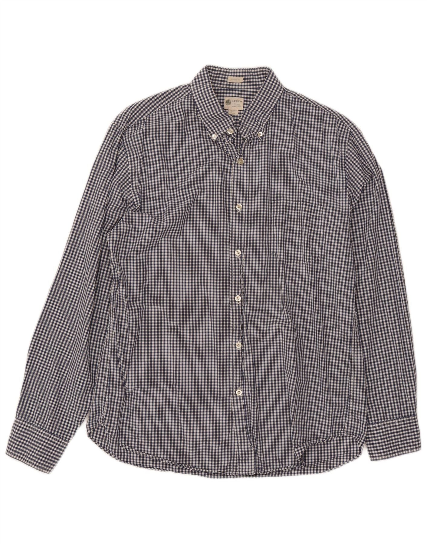 Camisa masculina J. CREW sob medida, grande algodão guingão azul marinho