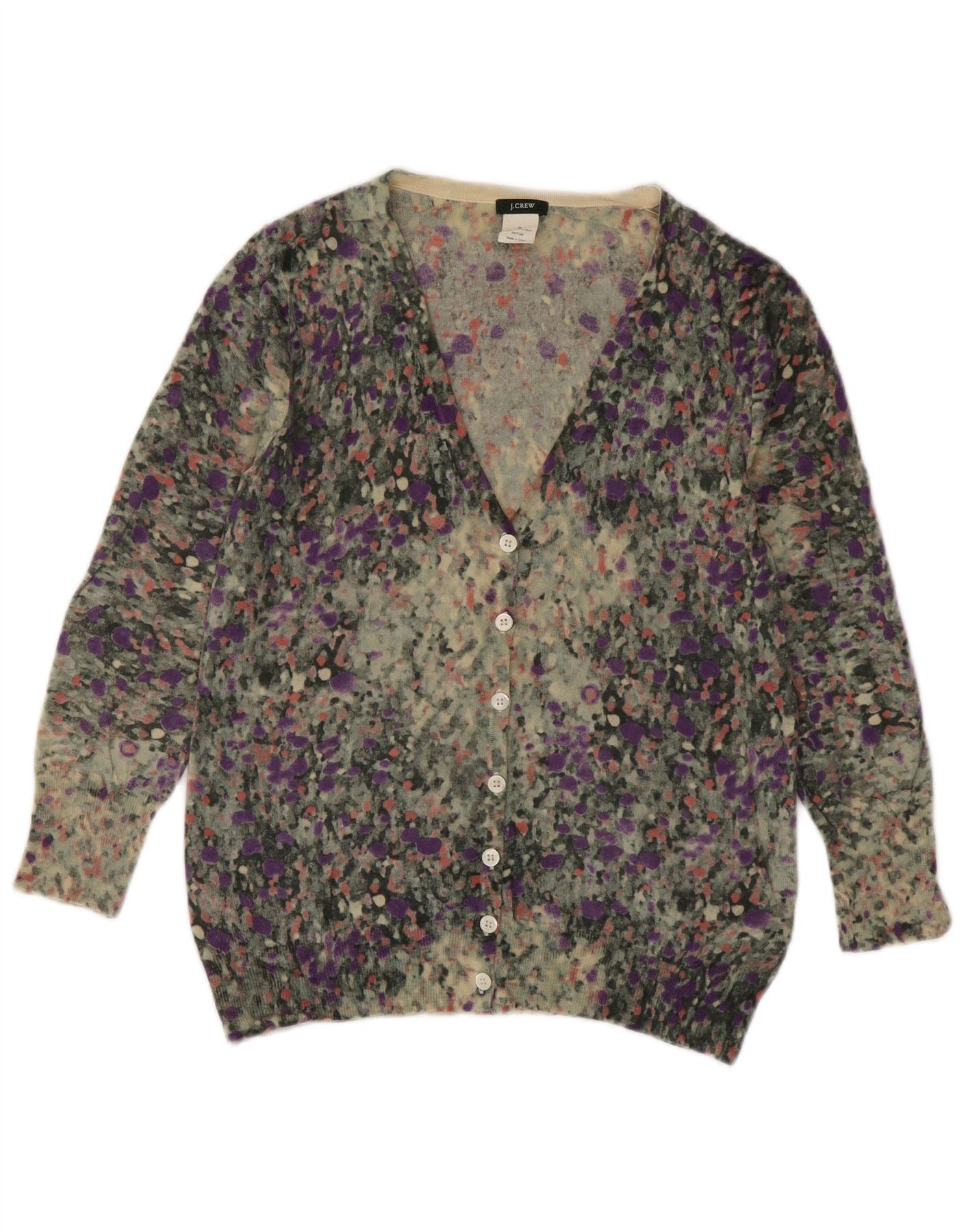 Suéter cardigã feminino J. CREW Reino Unido 12 médio multicolorido manchado