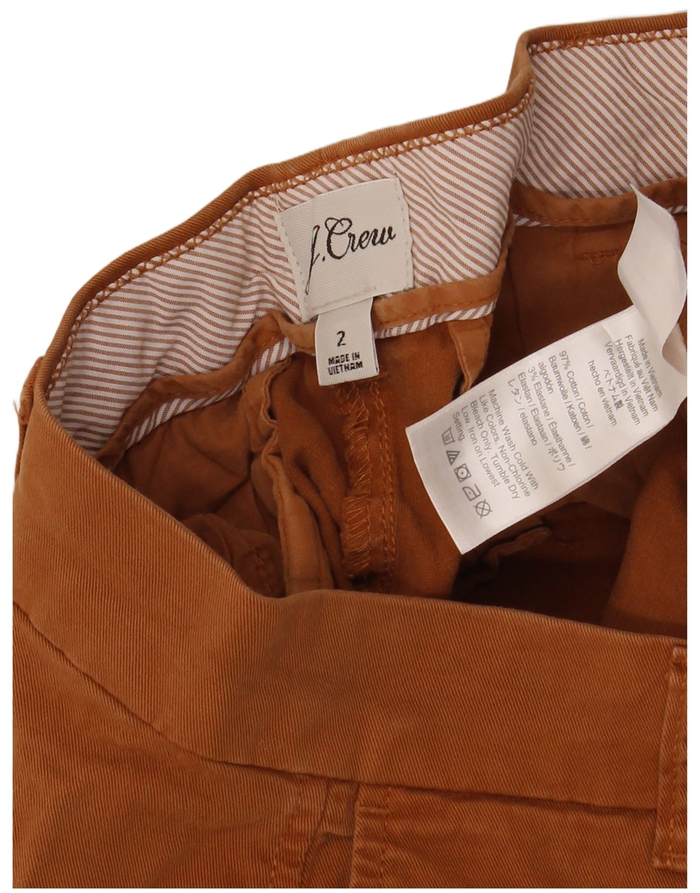 J. CREW Shorts Chino feminino US 2 XS W28 algodão marrom