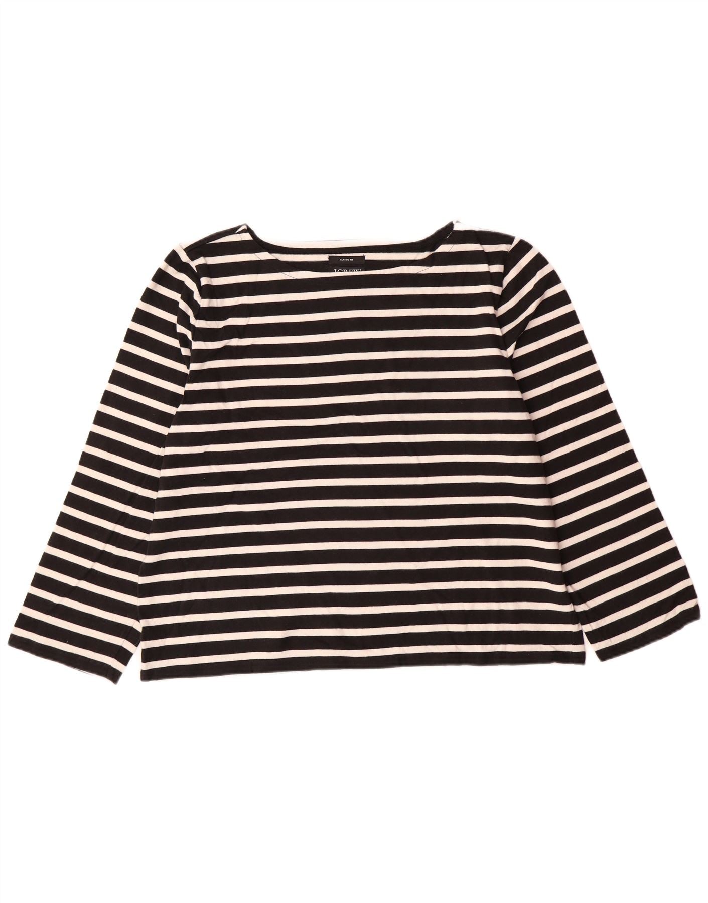 J. CREW Top feminino de ajuste clássico manga 3/4 Reino Unido 18 XL algodão listrado preto
