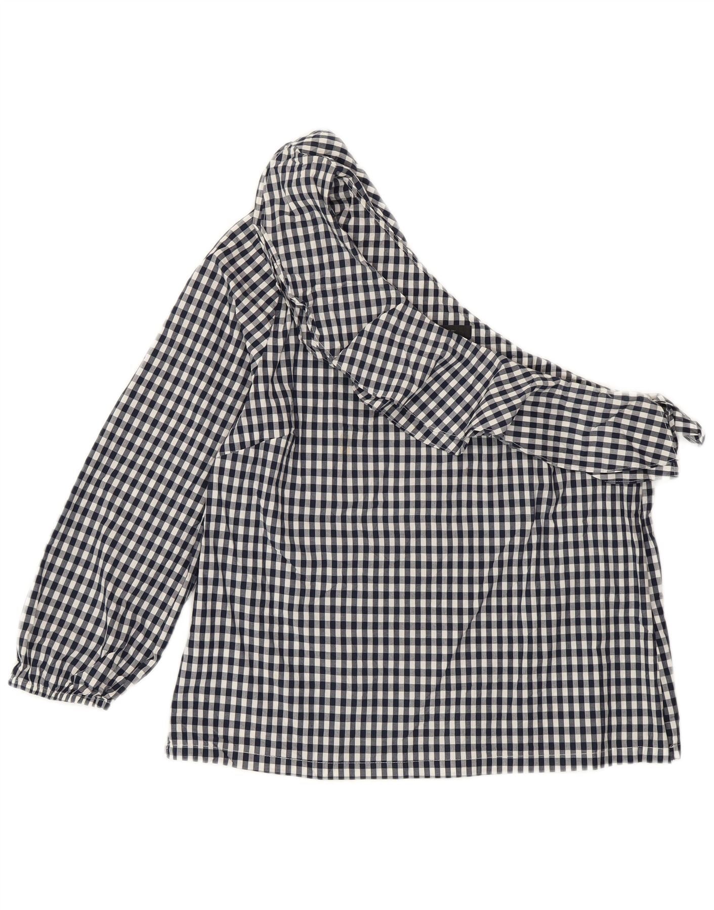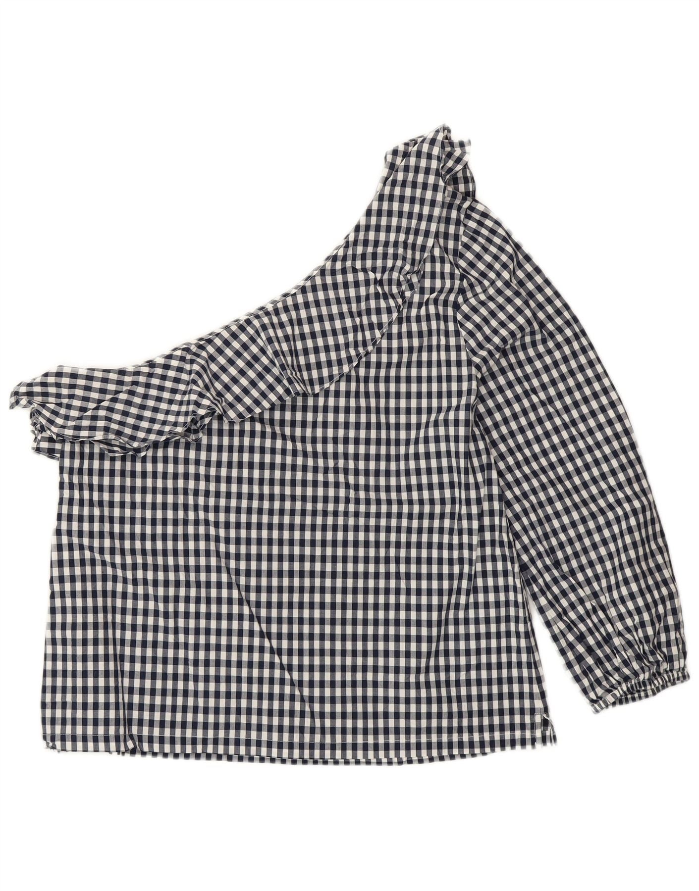J. CREW Top feminino de um ombro EUA 8 algodão guingão azul marinho médio