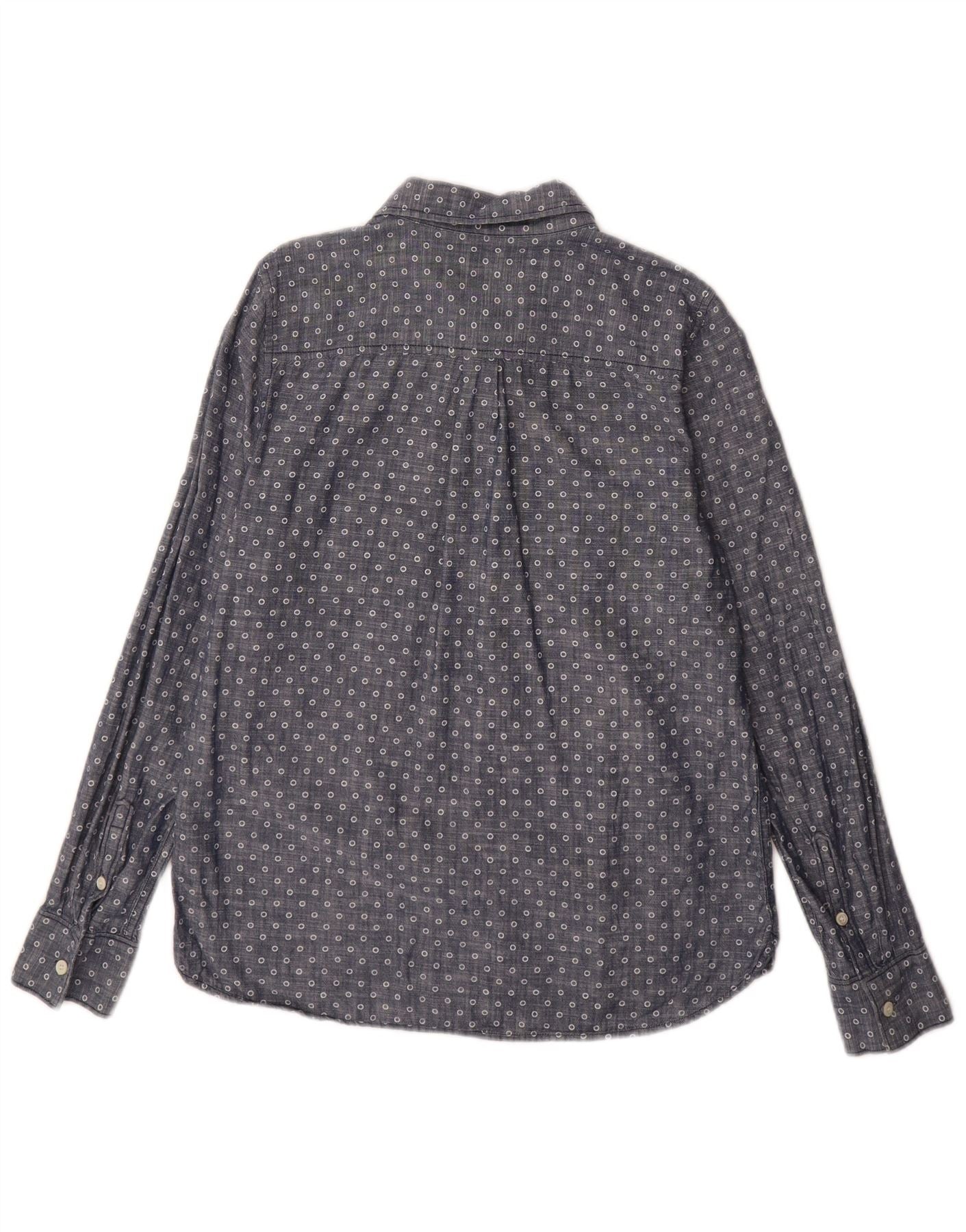 - Descrição da IA: Esta camisa jeans feminina J. Crew é confeccionada em tecido de cambraia azul, oferecendo um toque macio e durável. Ele apresenta um padrão sutil manchado por toda parte. O decote com gola e as mangas compridas proporcionam uma silhueta clássica. Uma frente totalmente abotoada e punhos abotoados completam o design. Inclui bolsos práticos e um ajuste regular confortável.