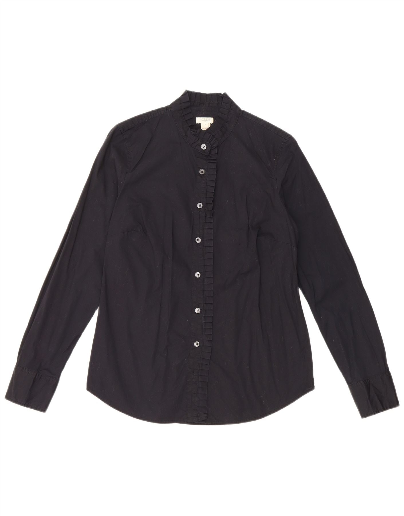 J. Crew Camisa feminina com babados na frente Reino Unido 10 pequeno algodão preto