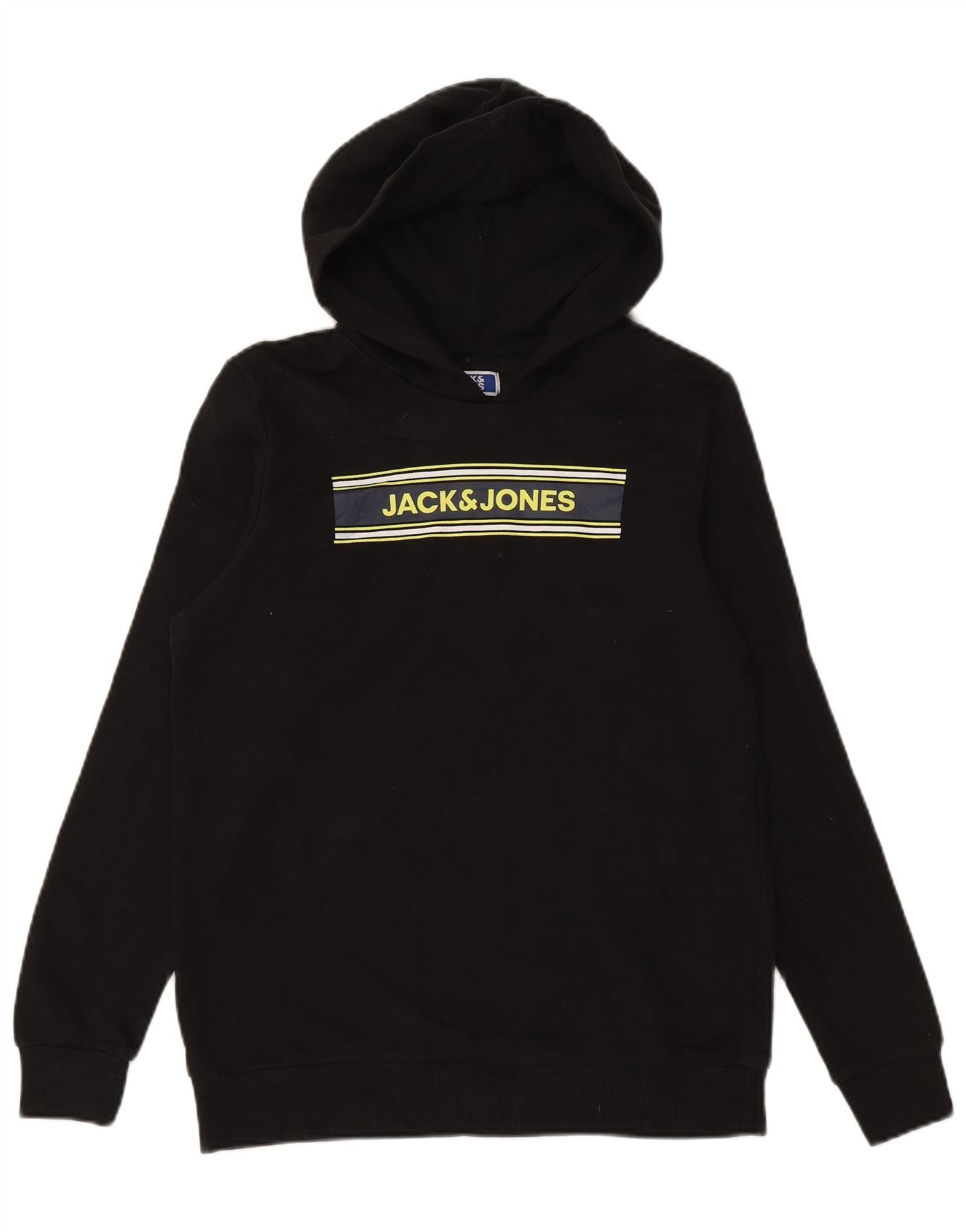 JACK & JONES Meninos moletom com capuz gráfico 15-16 anos algodão preto