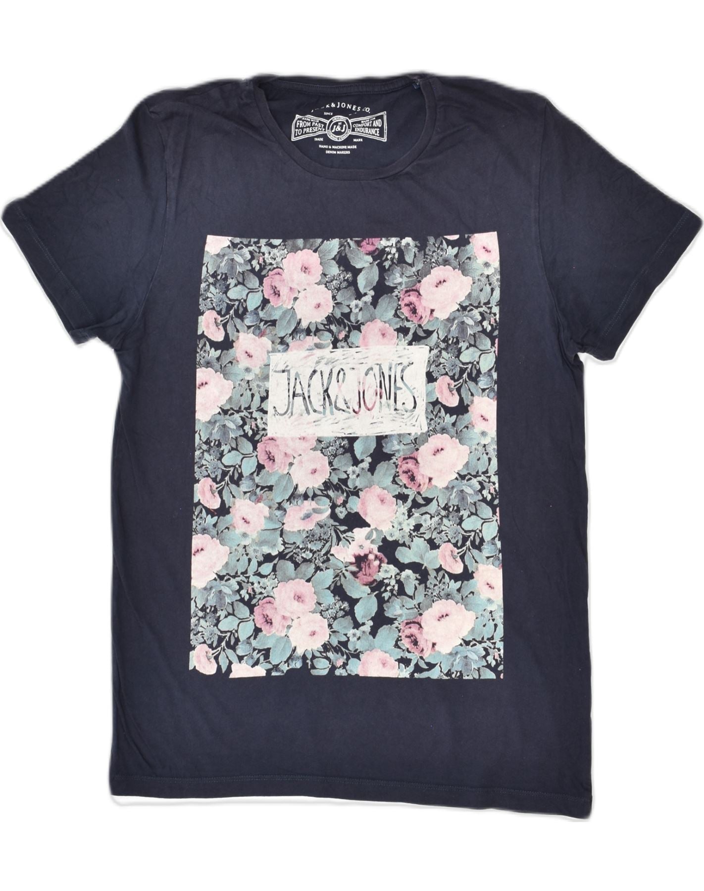 JACK & JONES Camiseta masculina gráfica Top médio azul marinho floral algodão