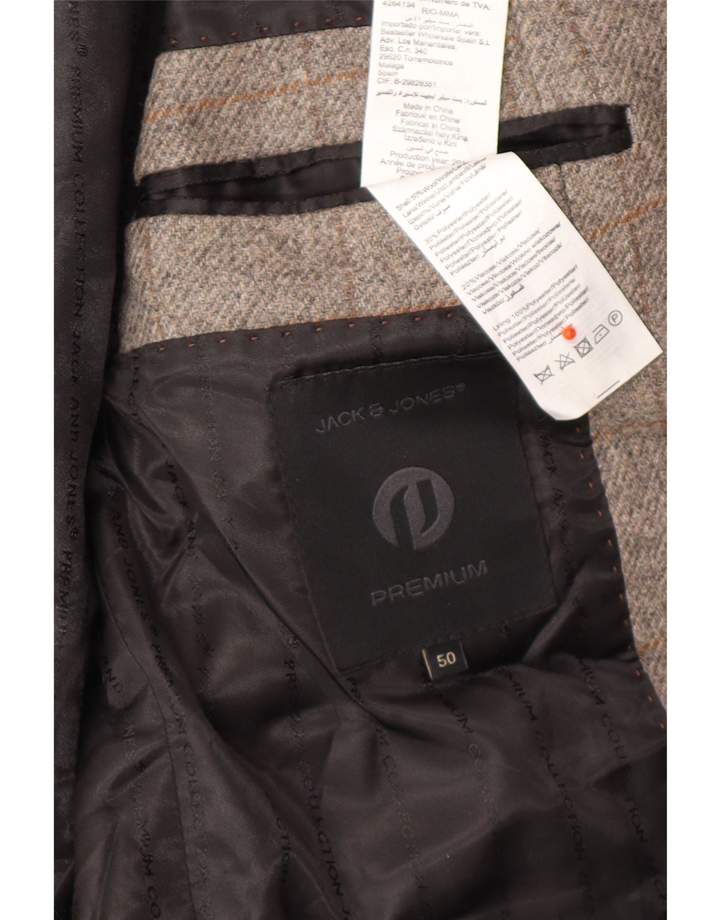 Jaqueta blazer masculina de 2 botões JACK & JONES IT 50 grande lã xadrez cinza