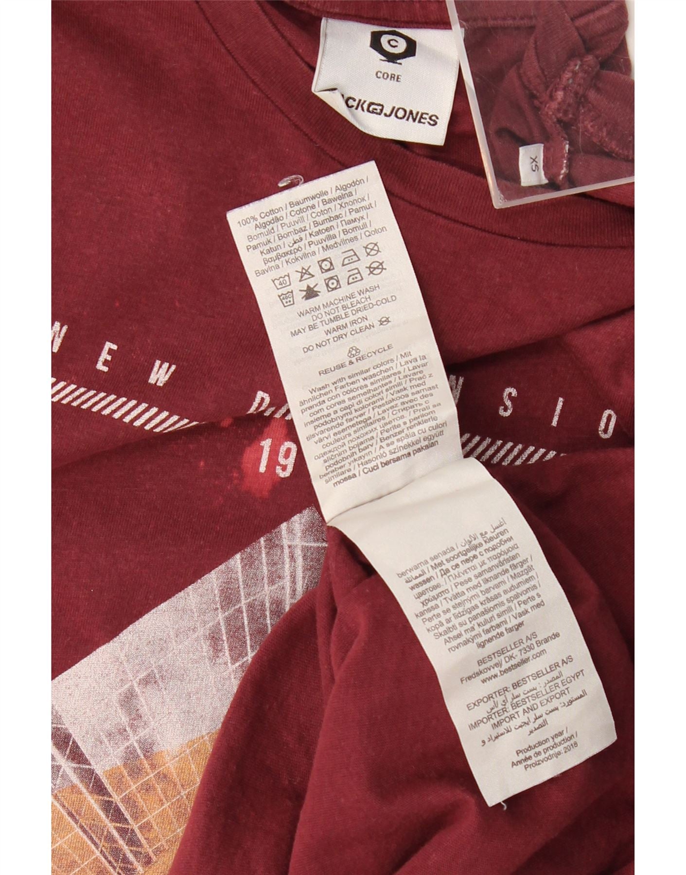 JACK & JONES Camiseta masculina Core Graphic Top XS Algodão Borgonha
