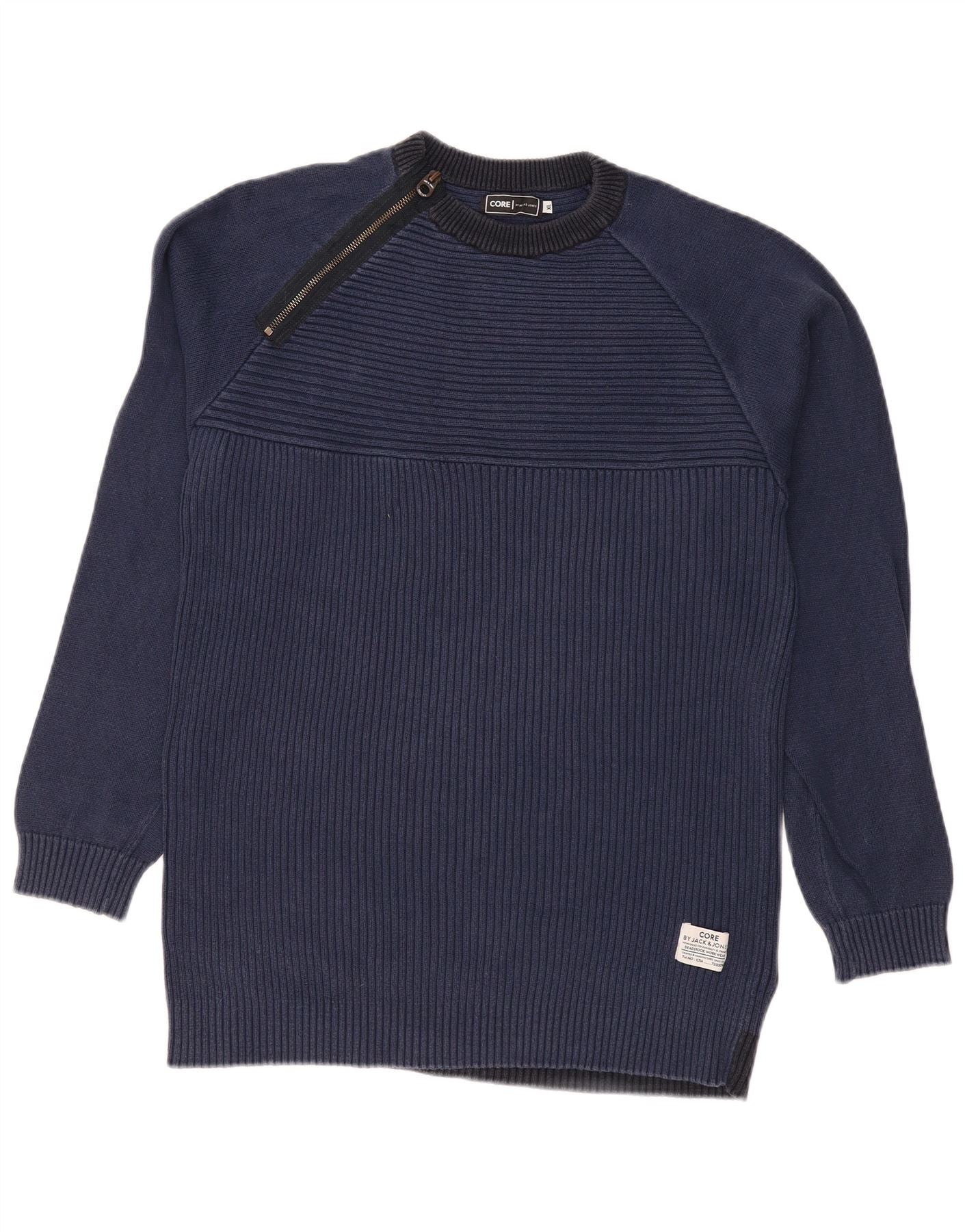 Suéter masculino JACK & JONES com zíper e gola XL, azul marinho, bloco colorido