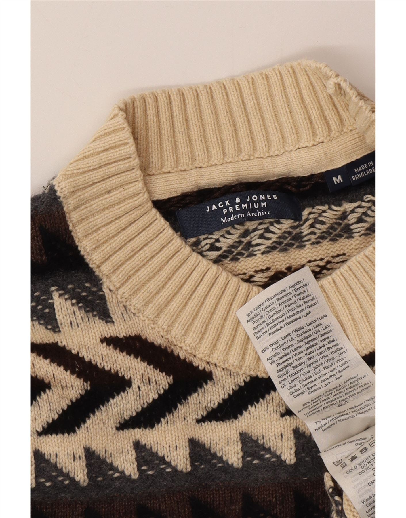 JACK & JONES Mens Crew Neck Jumper Sweater Medium Multicoloured Chevron