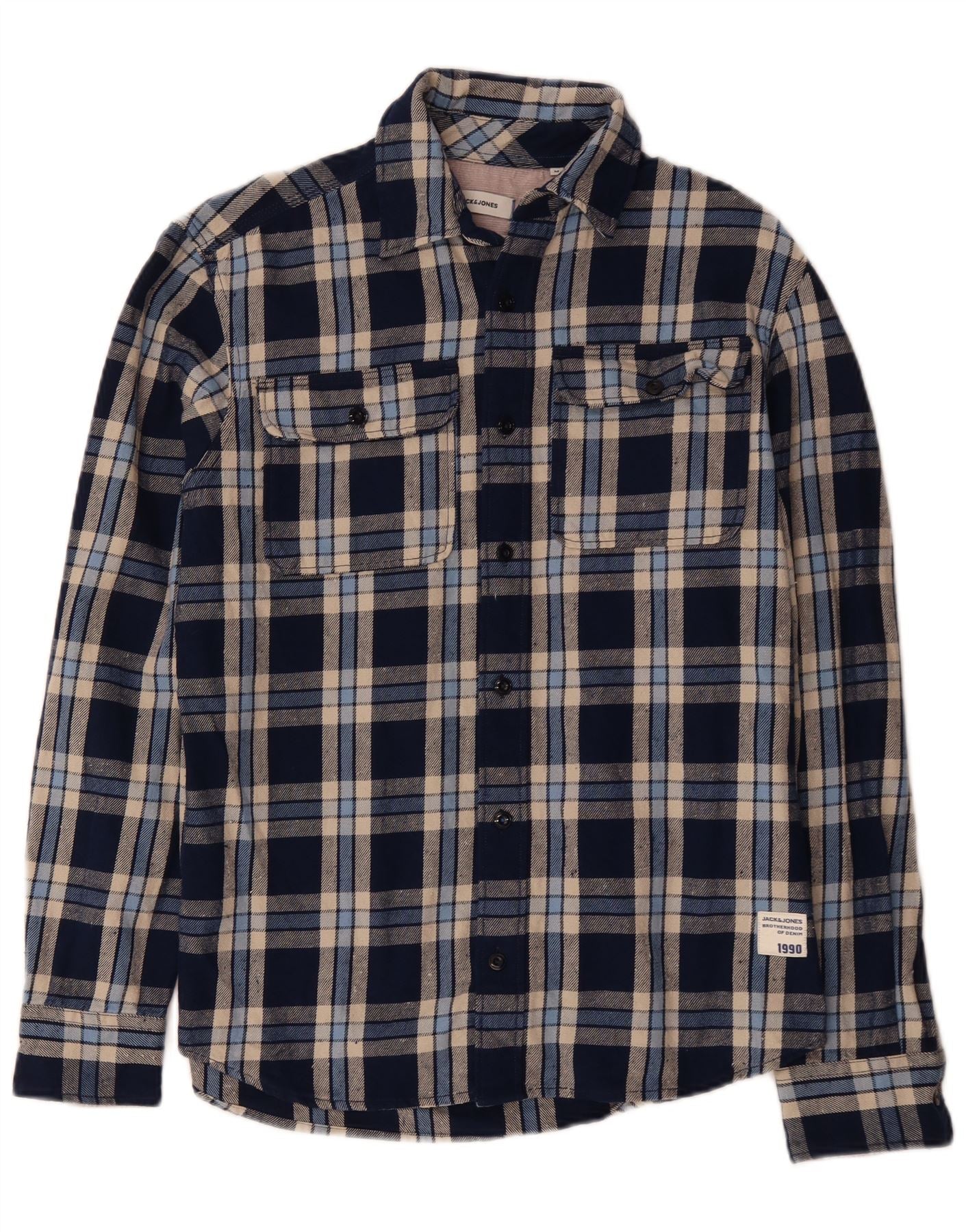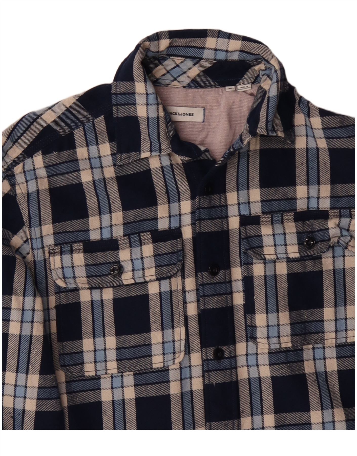 Camisa masculina de flanela JACK & JONES de algodão xadrez azul marinho médio