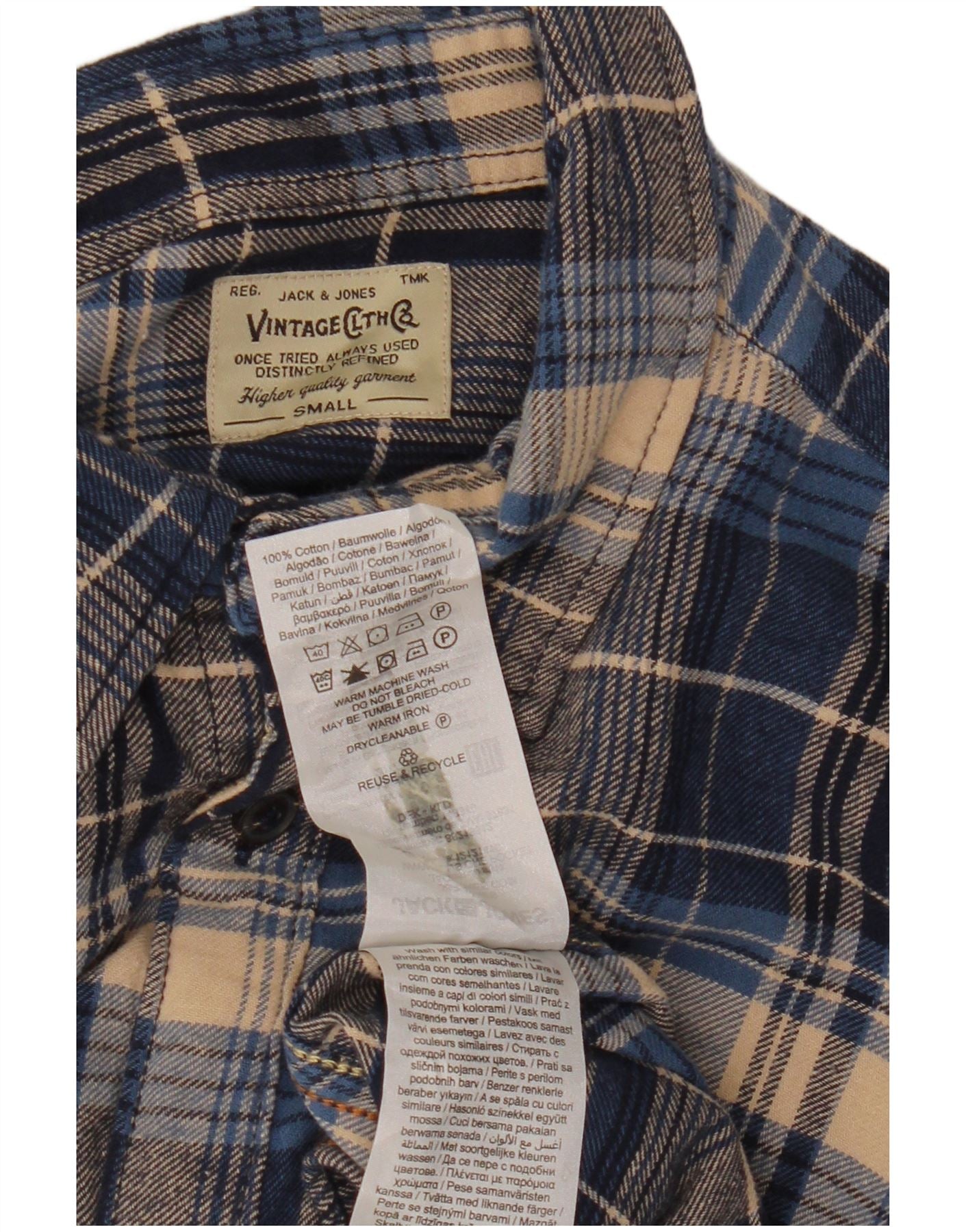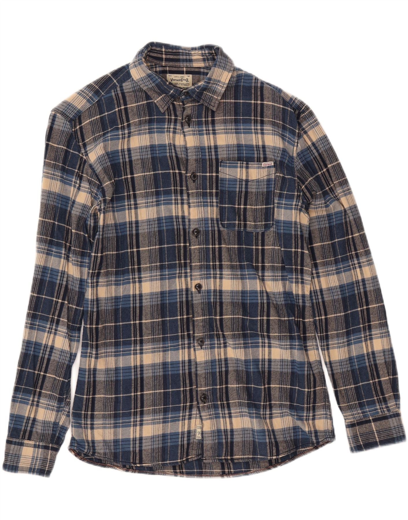 Camisa masculina de flanela JACK & JONES pequena azul xadrez de algodão