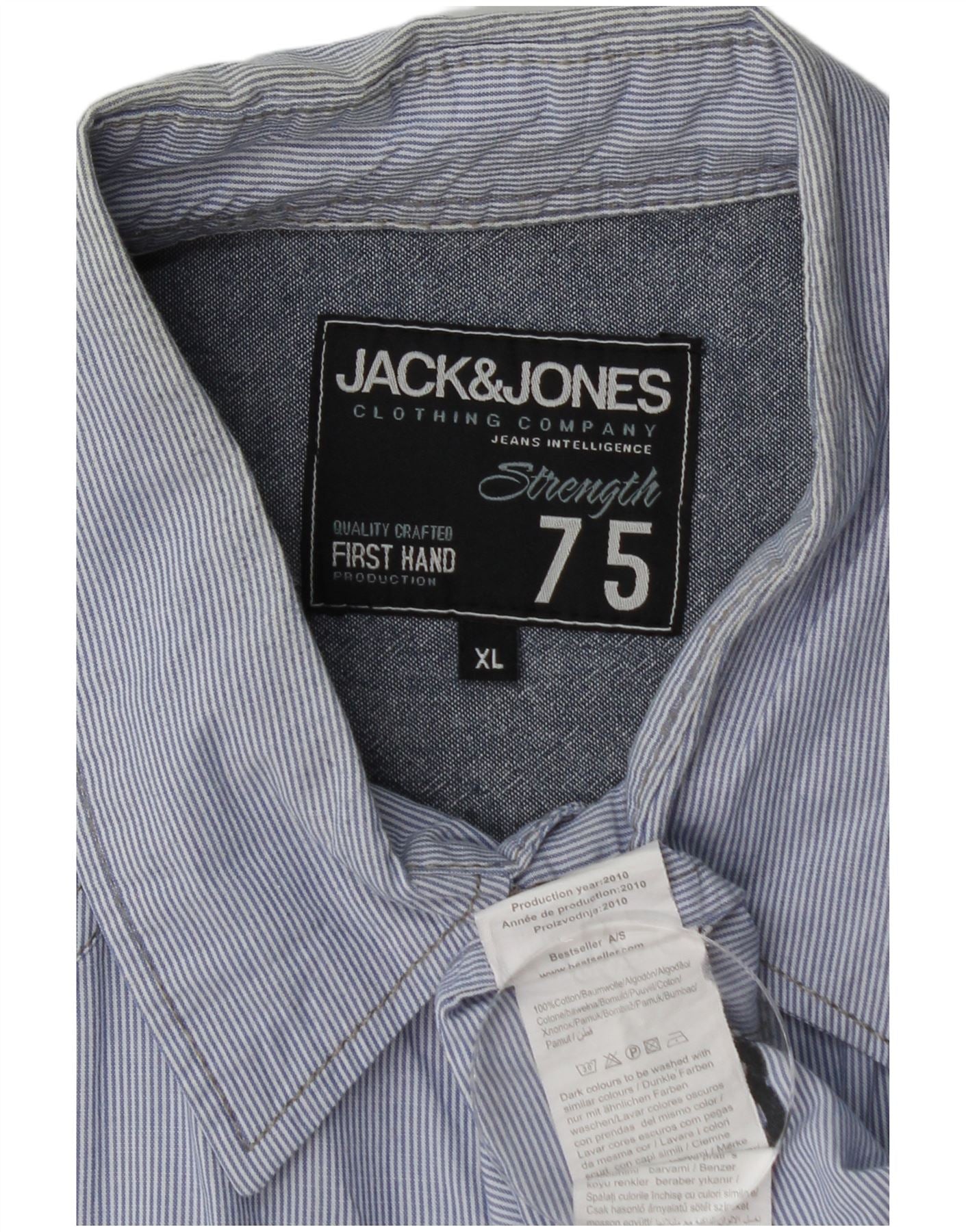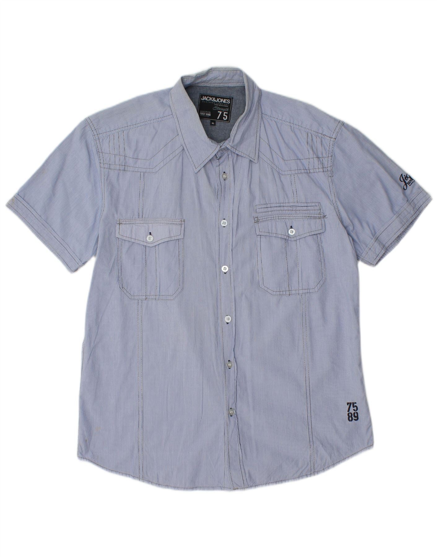 JACK & JONES Mens Graphic Short Sleeve Shirt XL Blue Pinstripe Cotton