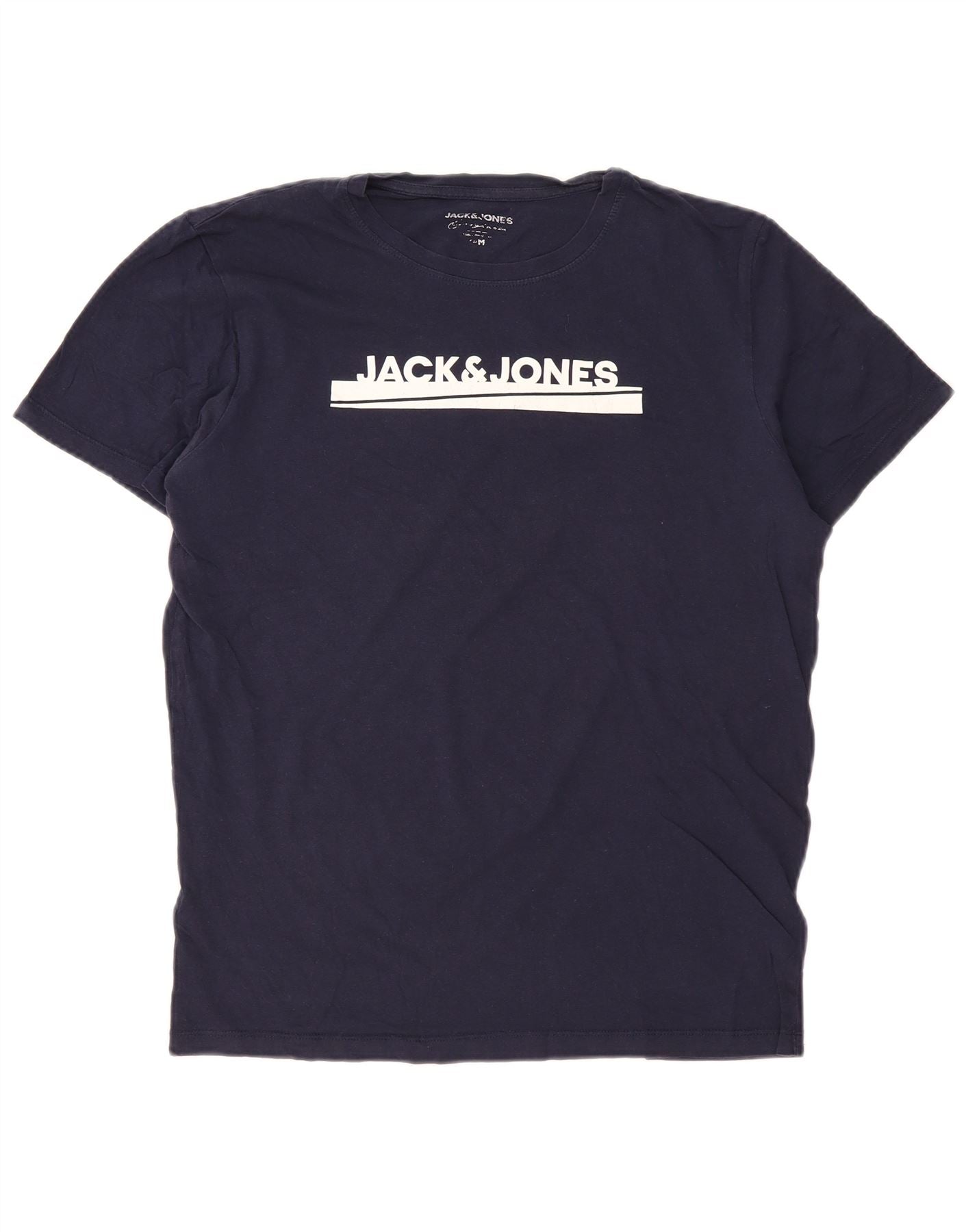 JACK & JONES Camiseta masculina gráfica Top médio algodão azul marinho