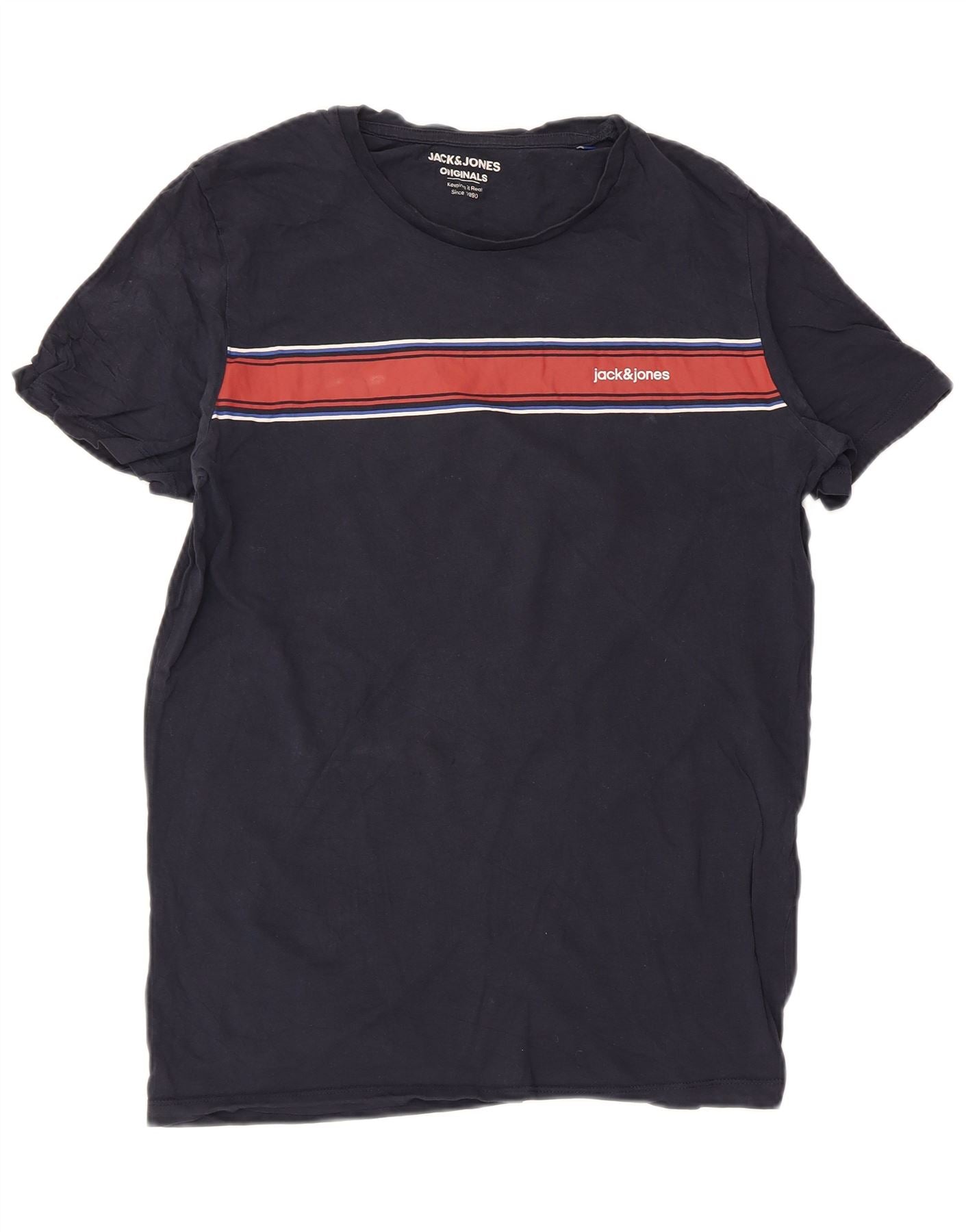 Camiseta gráfica masculina Jack & Jones Top médio algodão listrado azul marinho