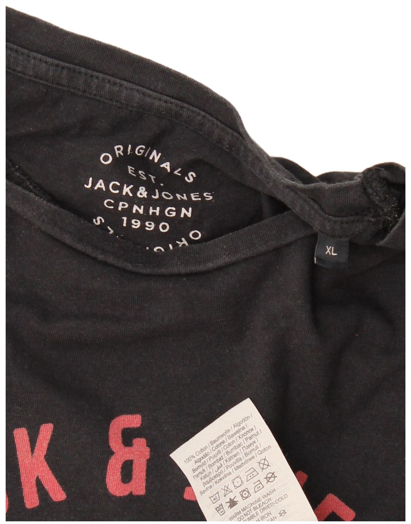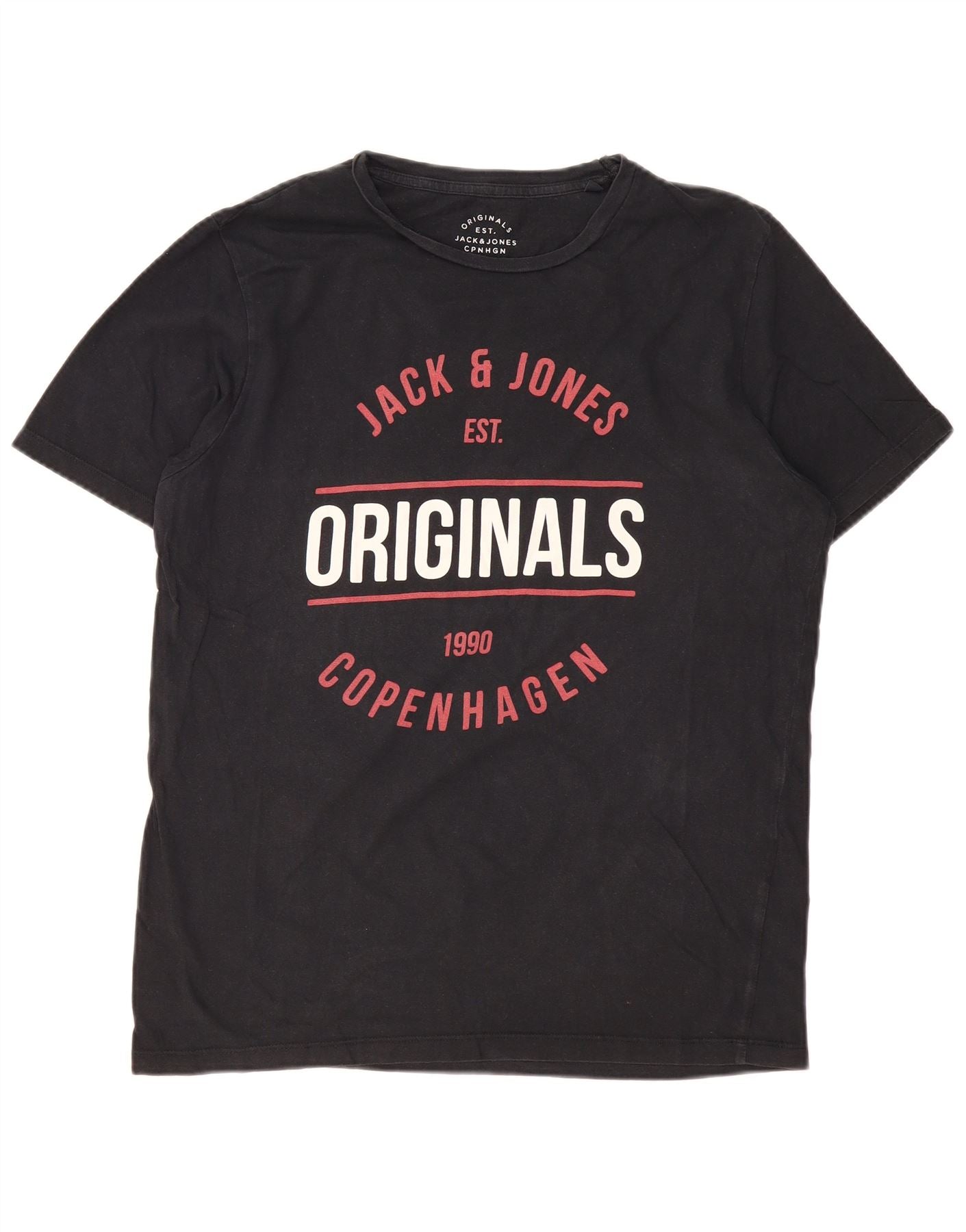 JACK & JONES Camiseta masculina original gráfica Top XL algodão preto