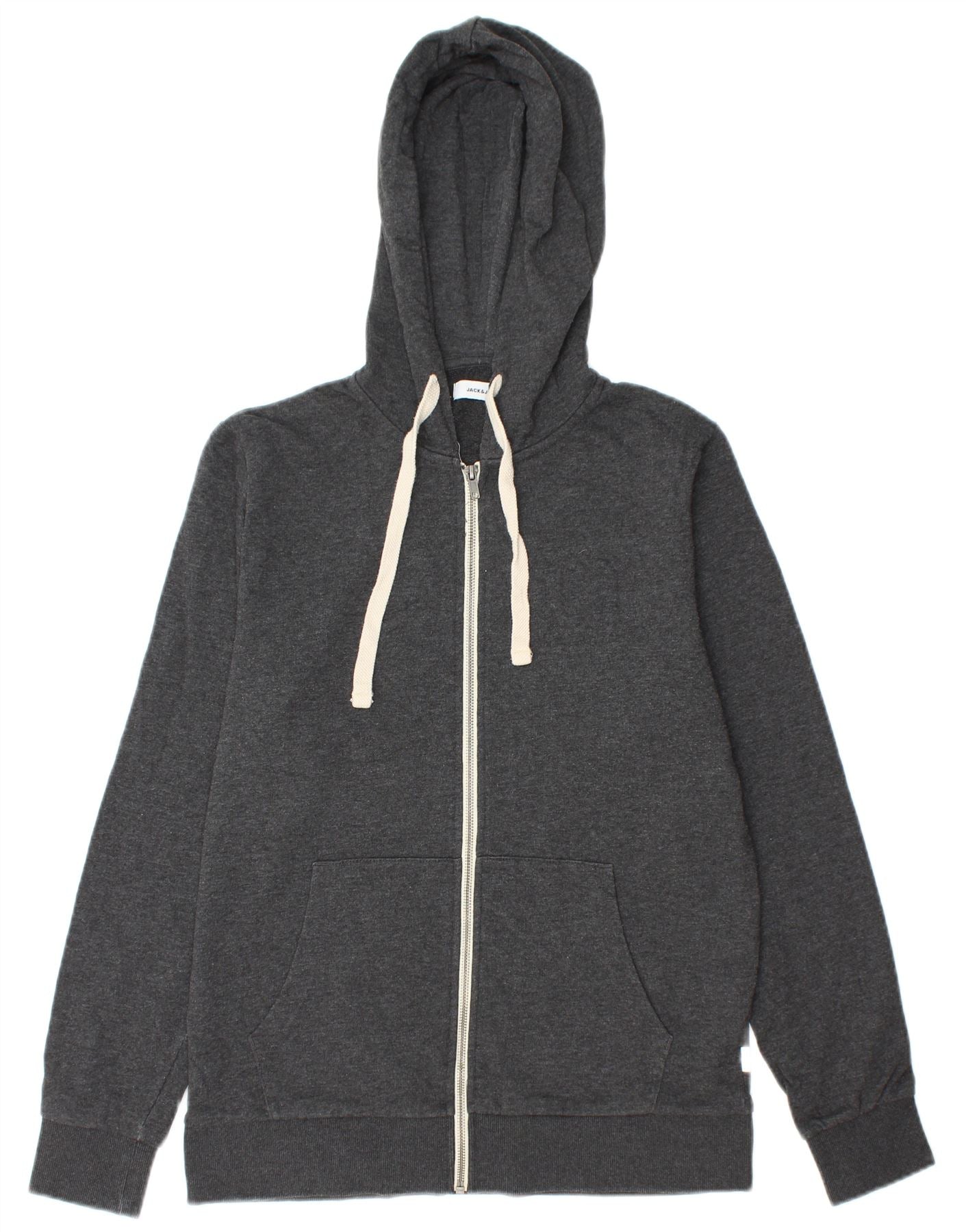 Suéter masculino com capuz e zíper JACK & JONES algodão cinza médio