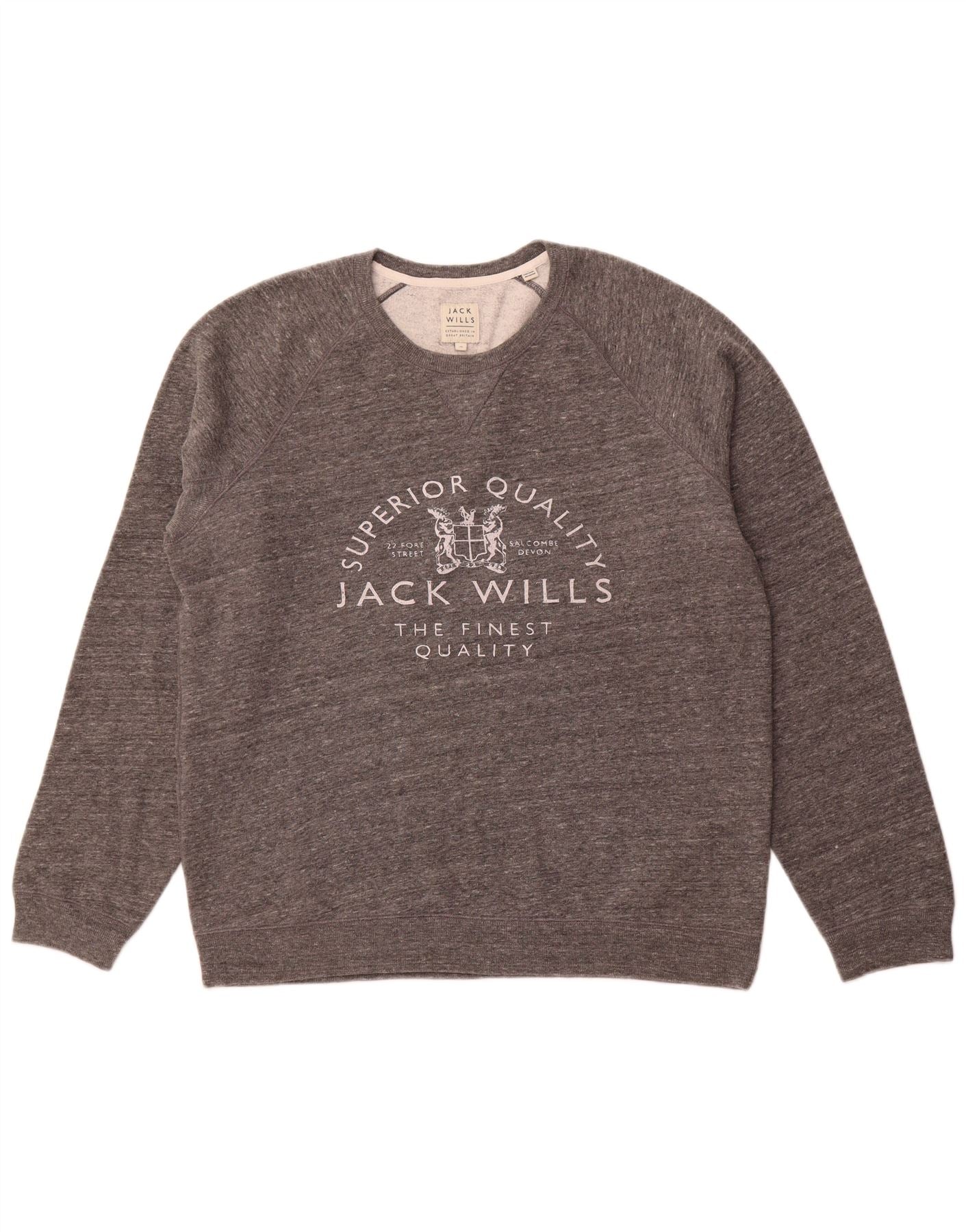 JACK WILLS Suéter masculino com gola redonda e algodão cinza manchado XL