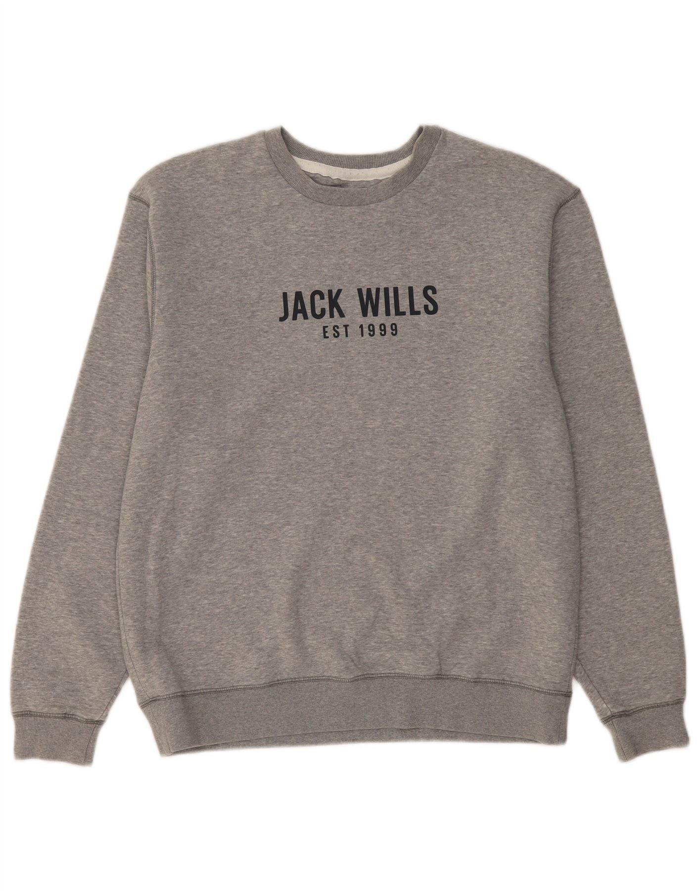 JACK WILLS Suéter gráfico masculino grande algodão cinza