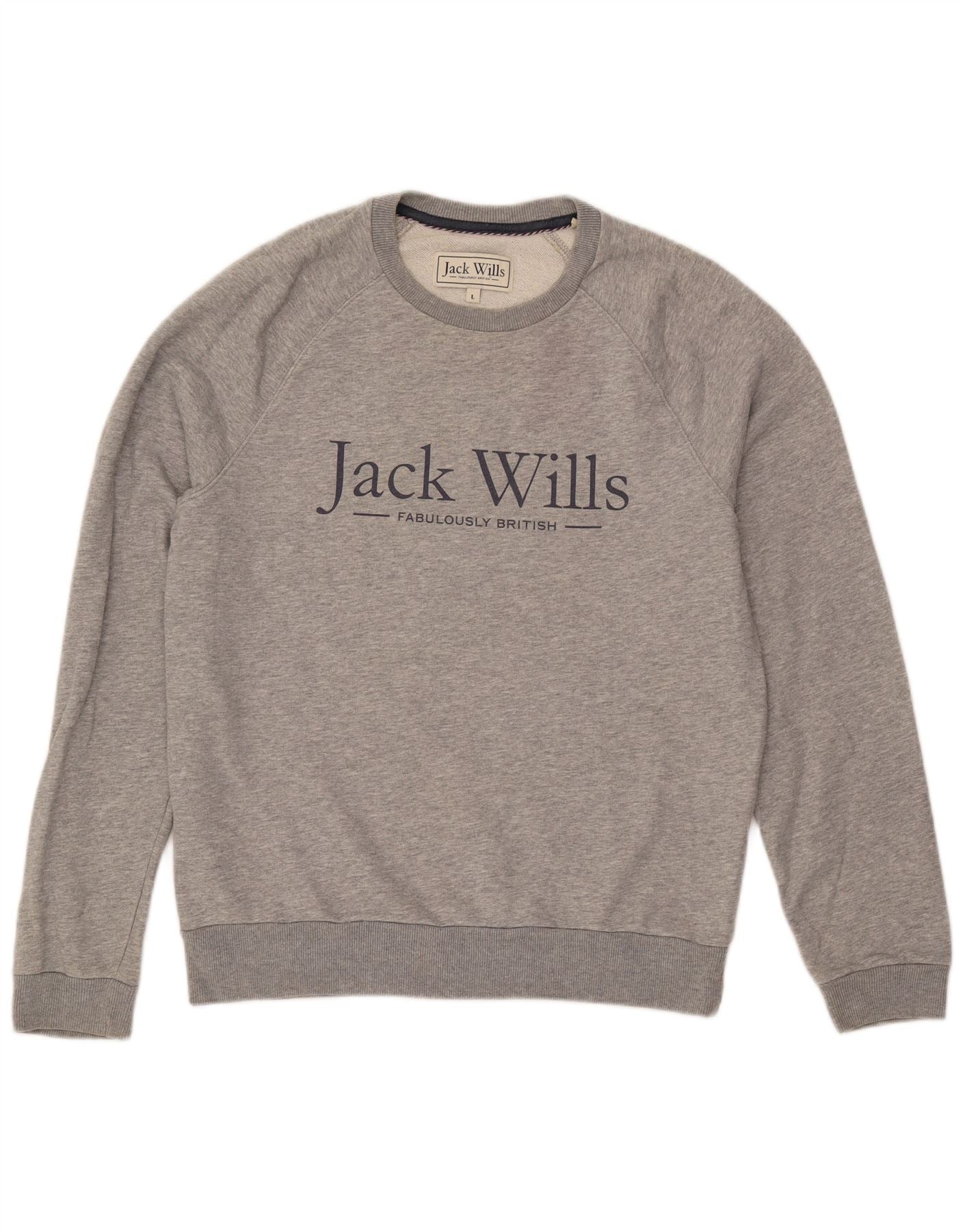 JACK WILLS Suéter gráfico masculino grande algodão cinza