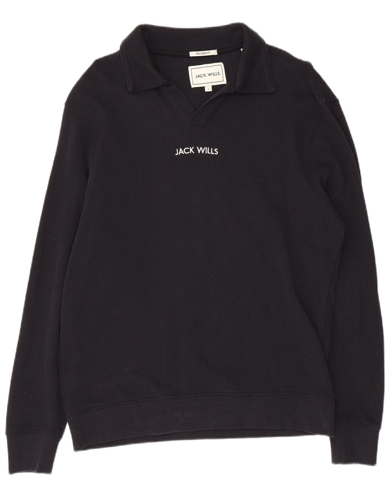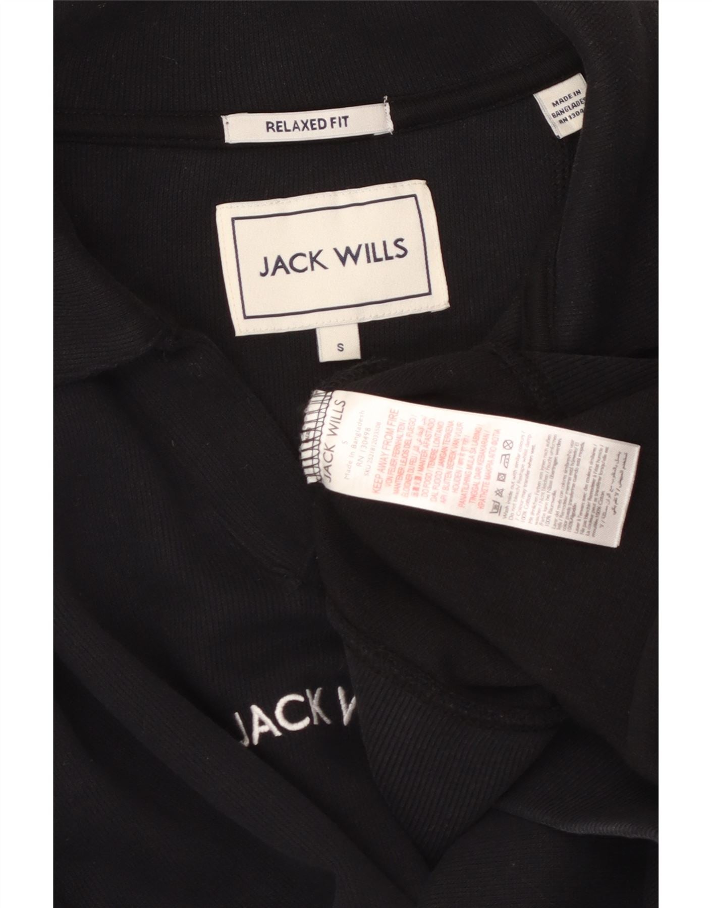 JACK WILLS Mens Relaxed Fit Polo Neck Sweatshirt Jumper Small Black Cotton