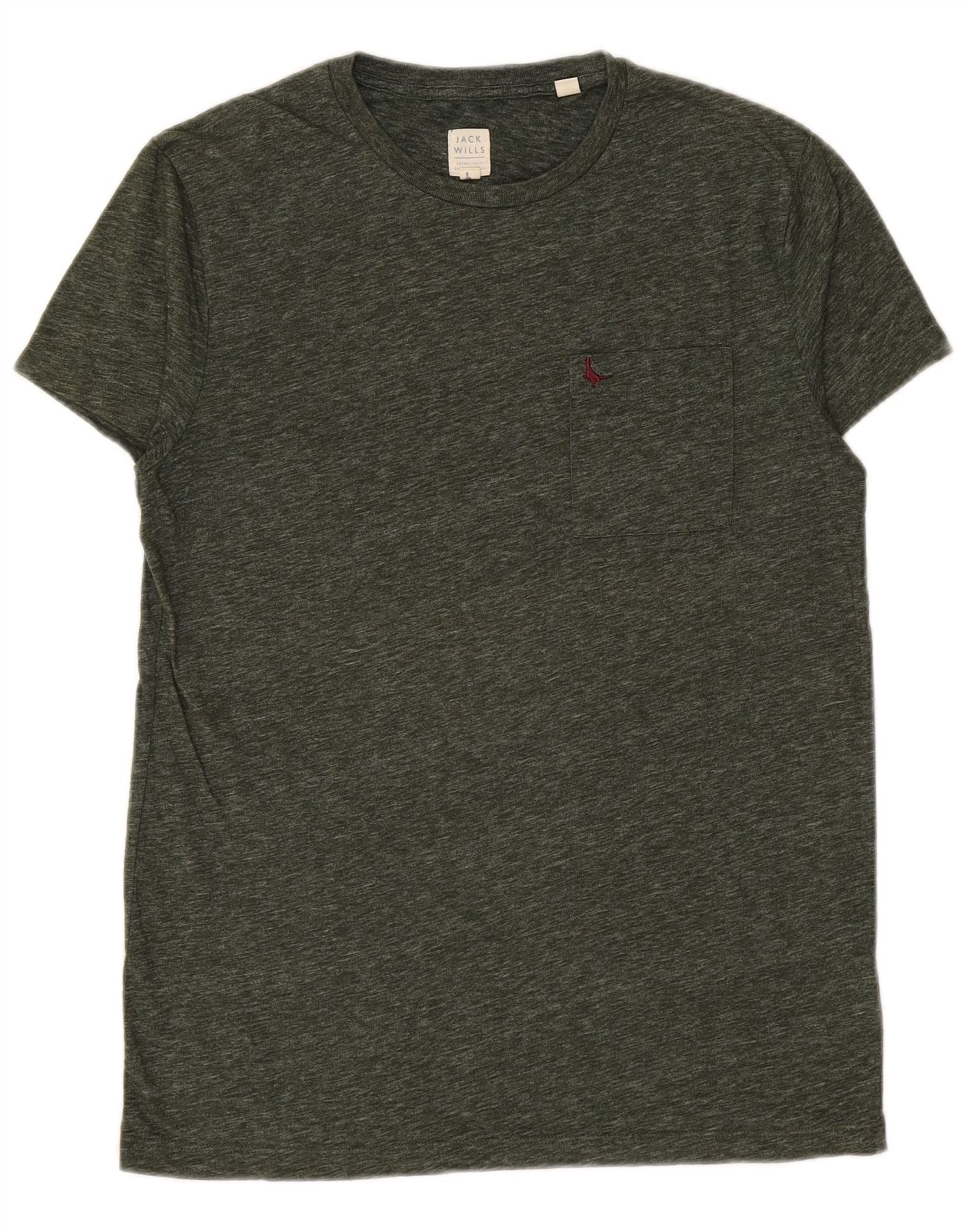 JACK WILLS Camiseta masculina pequena de algodão cáqui salpicado