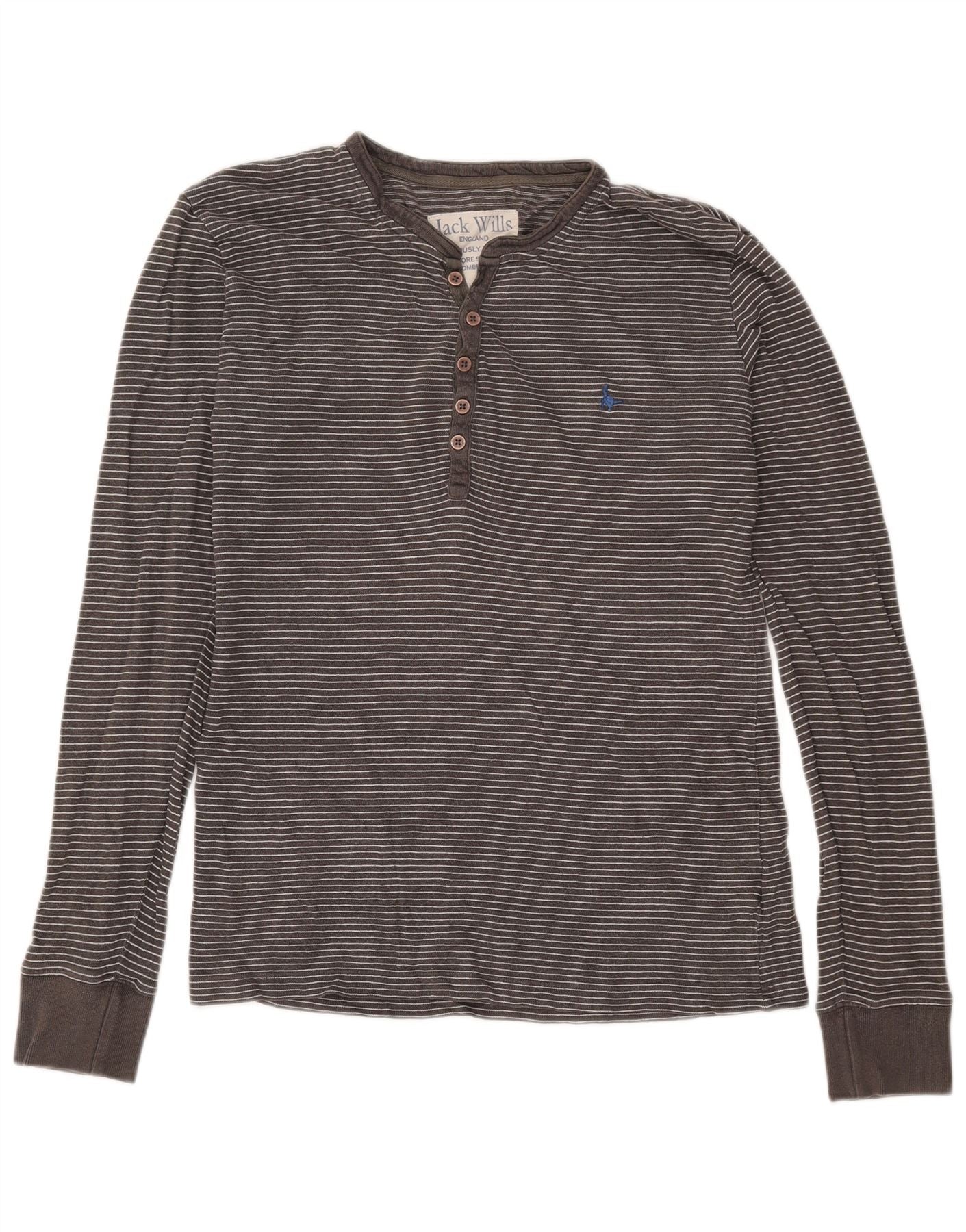 JACK WILLS Top masculino de manga comprida de algodão listrado cinza pequeno