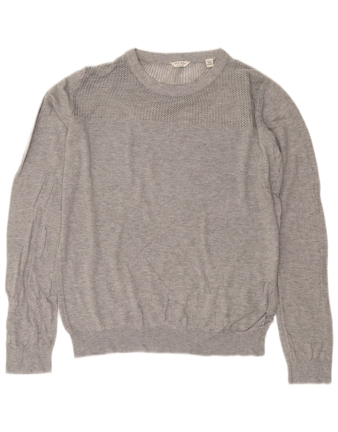 Suéter feminino Jack Wills com gola redonda Reino Unido 12 algodão cinza médio