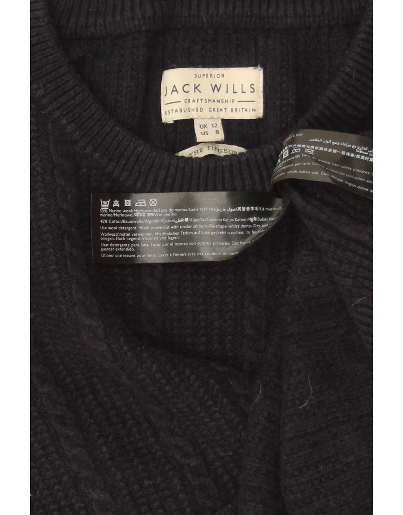 Suéter feminino JACK WILLS com gola redonda Reino Unido 12 médio azul marinho