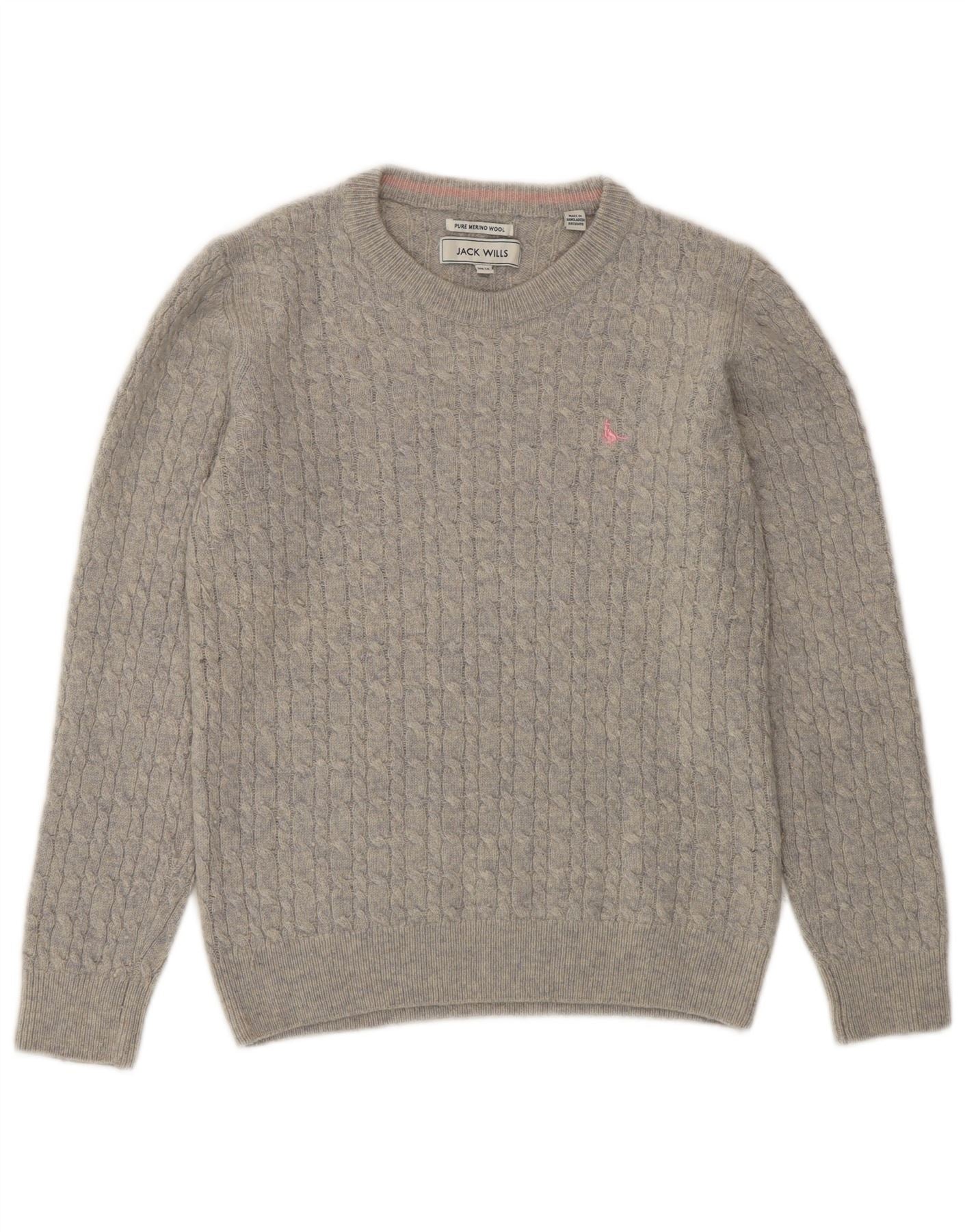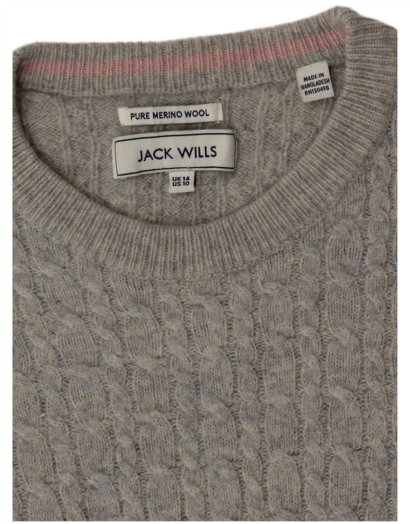 JACK WILLS Womens Crew Neck Jumper Sweater UK 14 Large Grey Merino Wool