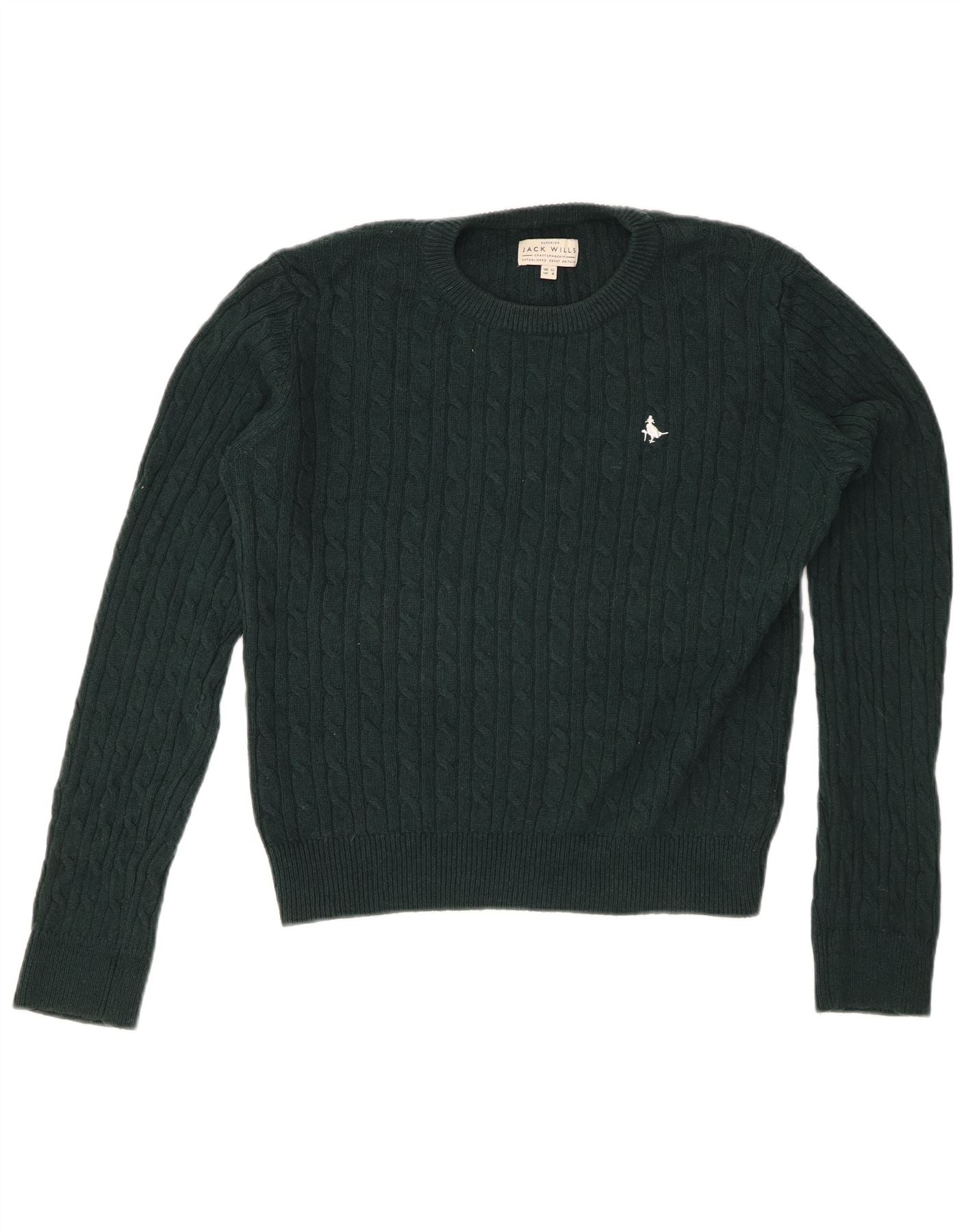 Suéter feminino JACK WILLS com gola redonda e gola redonda Reino Unido 12 lã verde médio