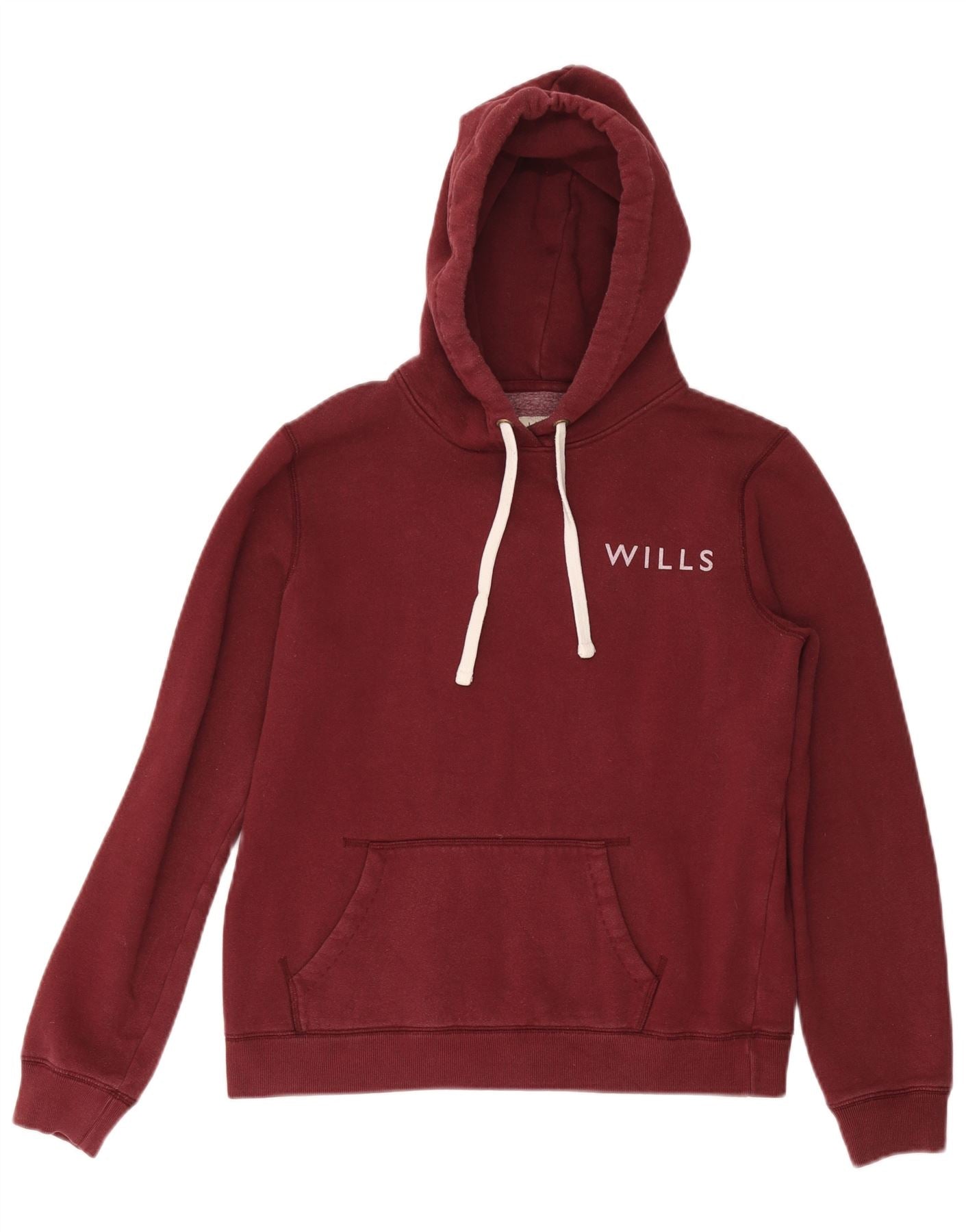 JACK WILLS Suéter feminino com capuz gráfico Reino Unido 12 algodão médio Borgonha
