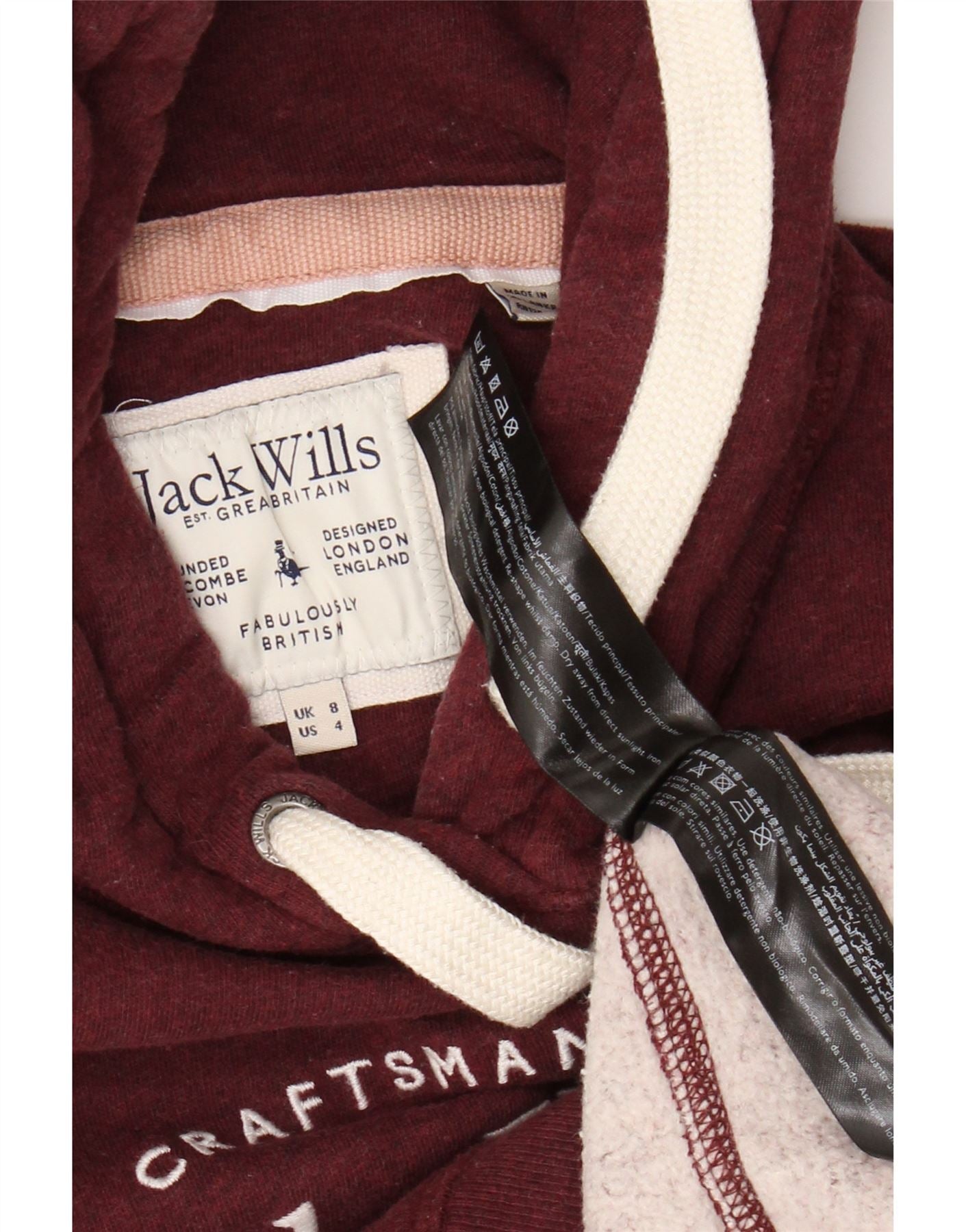 Jack Wills moletom feminino com capuz gráfico Reino Unido 8 pequeno algodão borgonha