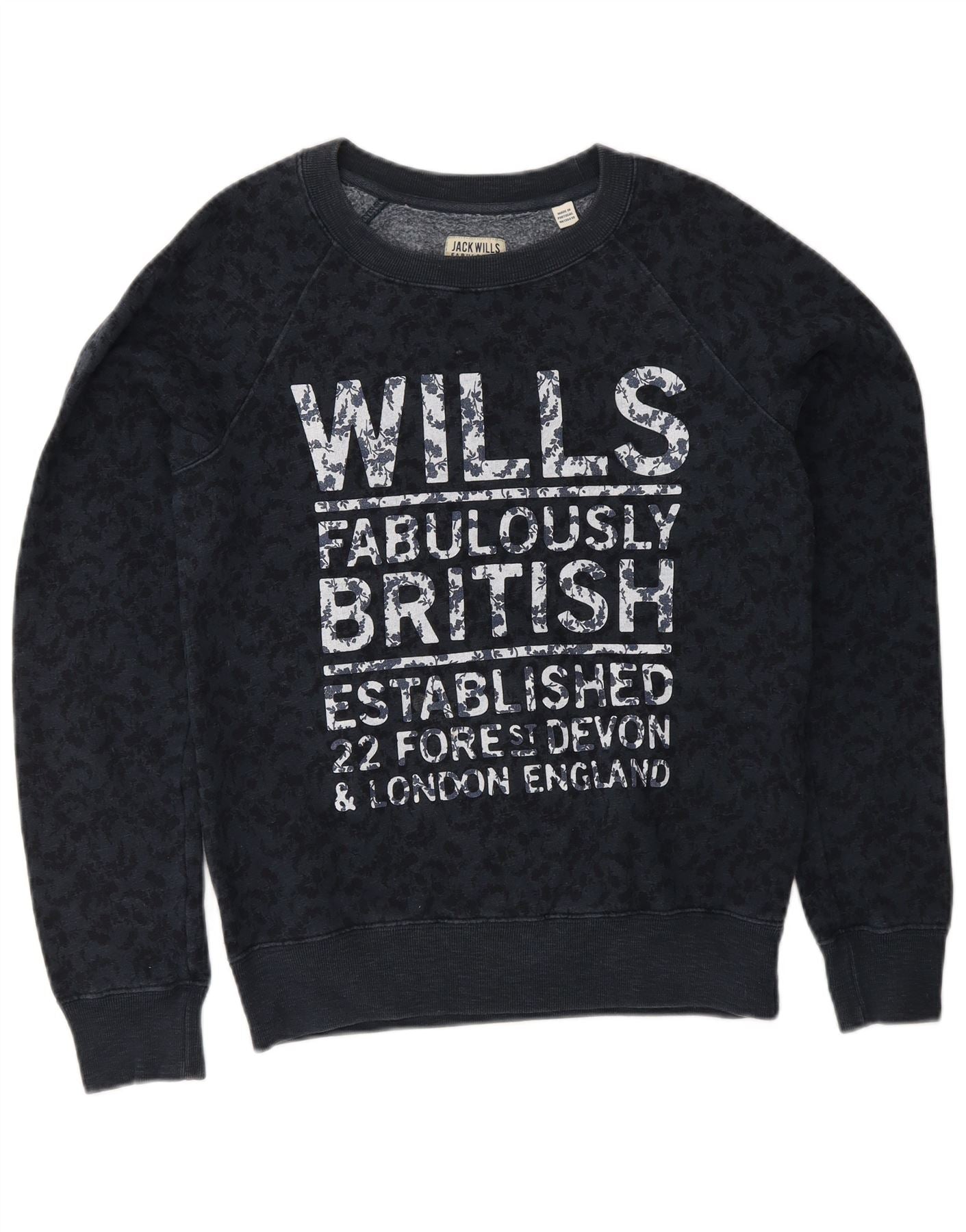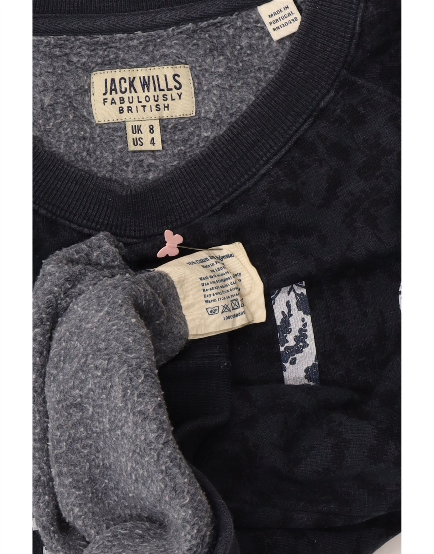Suéter gráfico feminino JACK WILLS Reino Unido 8 pequeno azul marinho floral