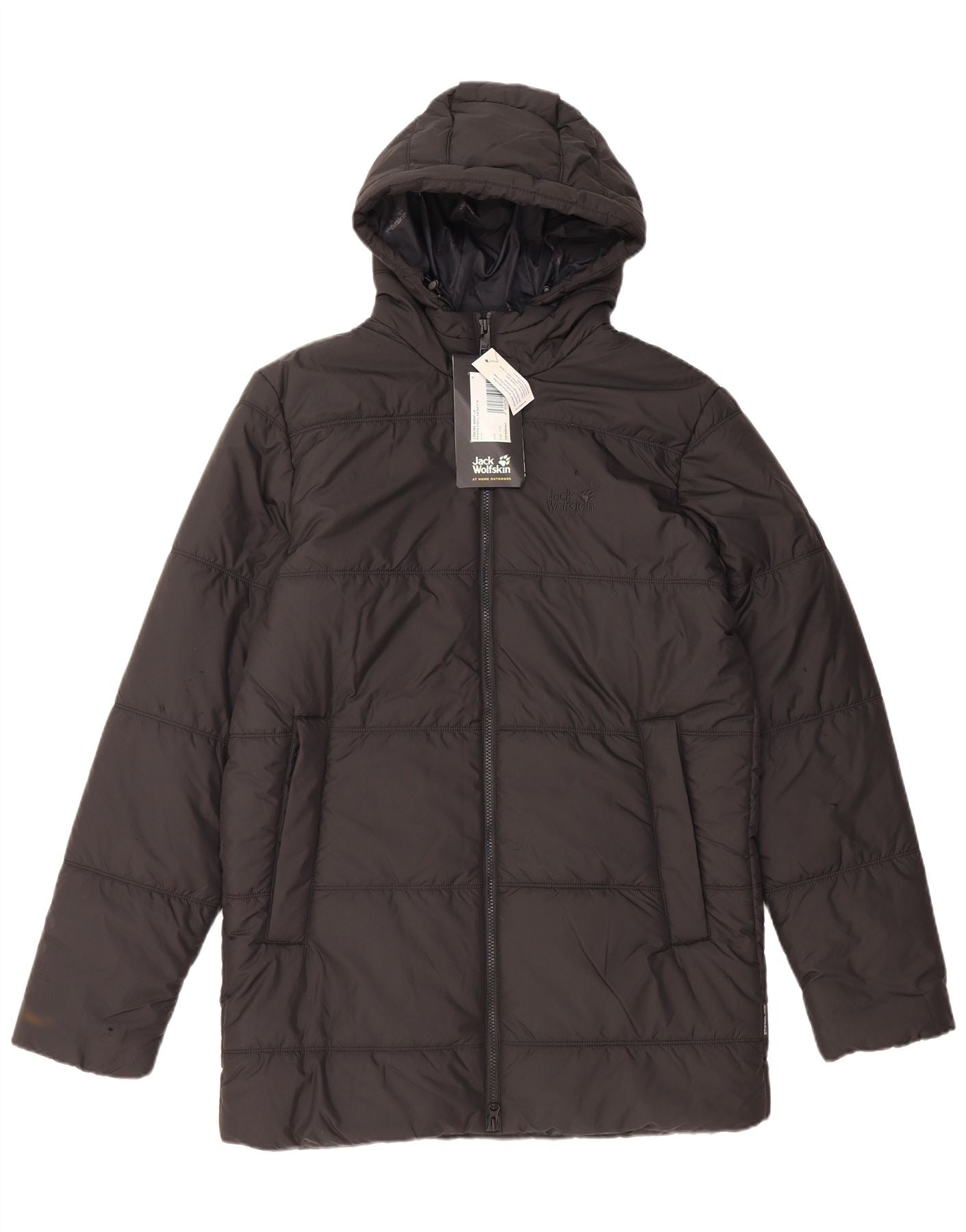 Jaqueta masculina acolchoada com capuz JACK WOLFSKIN UK 40 poliéster preto médio