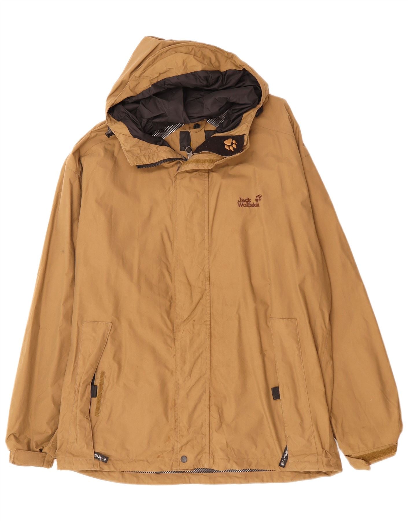 Jaqueta de chuva masculina Jack Wolfskin com capuz Reino Unido 40/42 grande poliamida bege