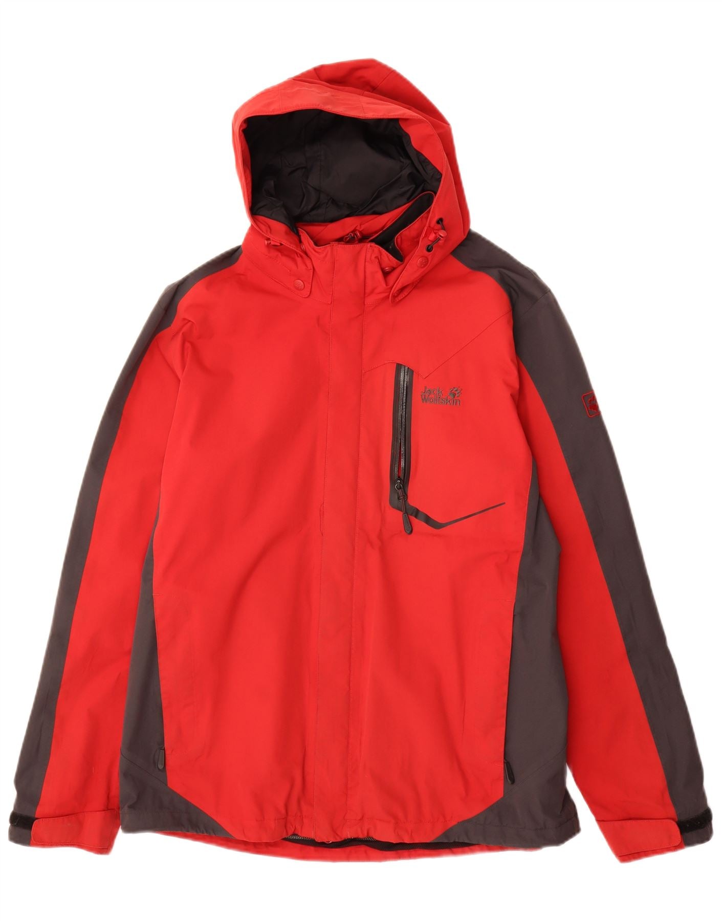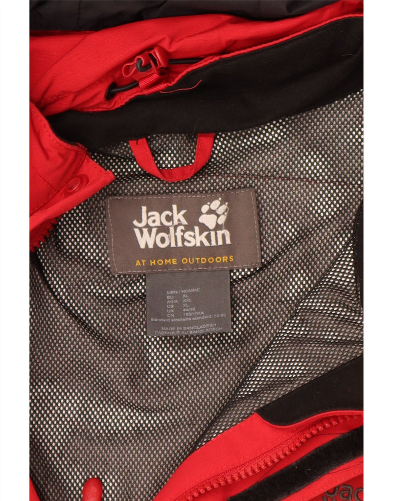 JACK WOLFSKIN Mens Hooded Rain Jacket UK 44/46 XL Red Colourblock