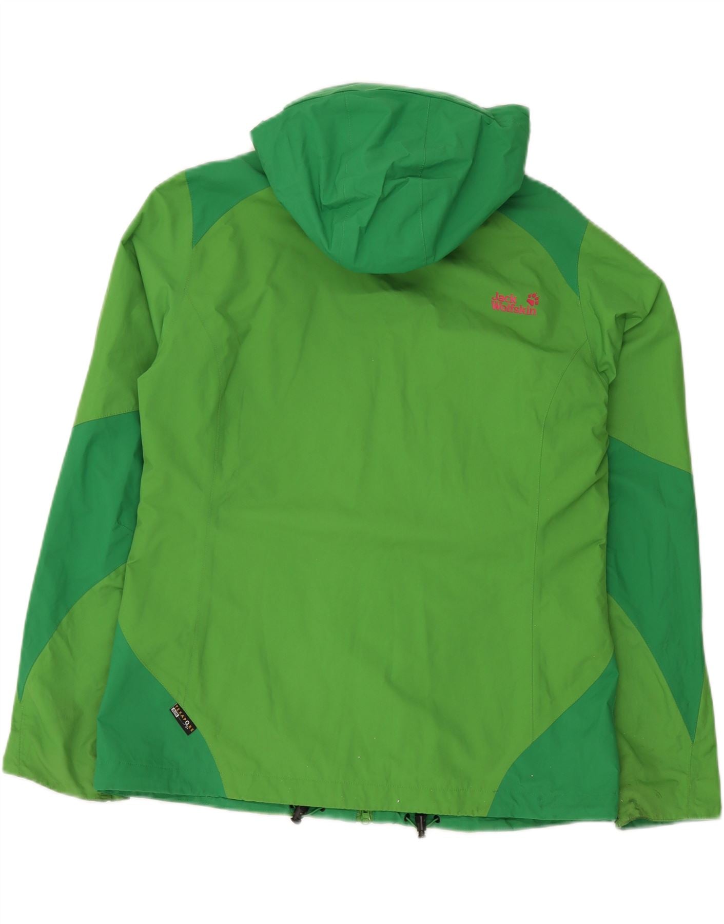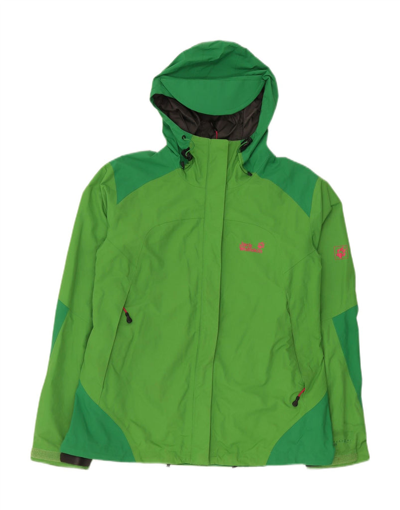 JACK WOLFSKIN Womens Hooded Rain Jacket UK 18/20 XL Green Colourblock