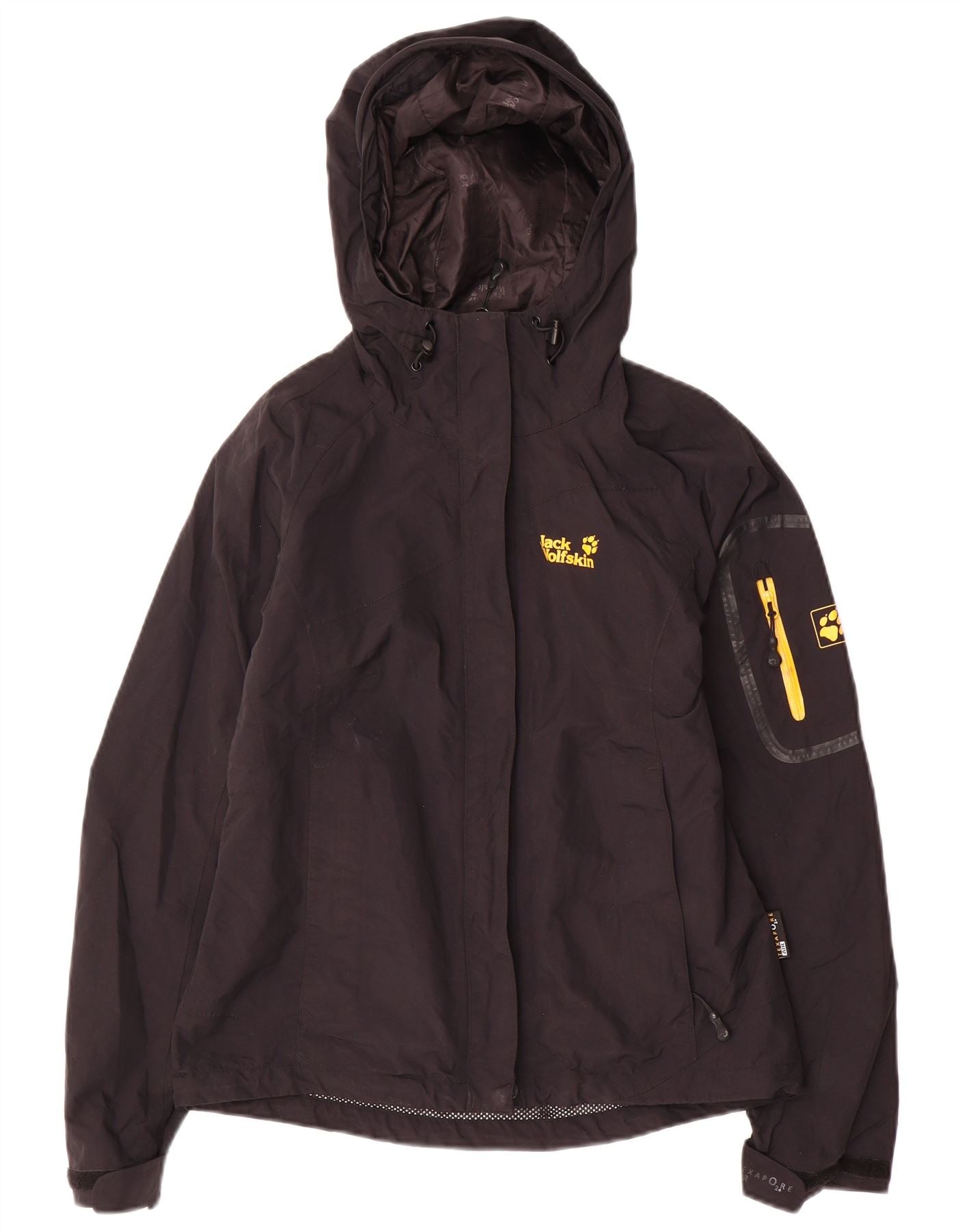Jaqueta de chuva feminina com capuz Jack Wolfskin Reino Unido 8 pequena poliamida preta