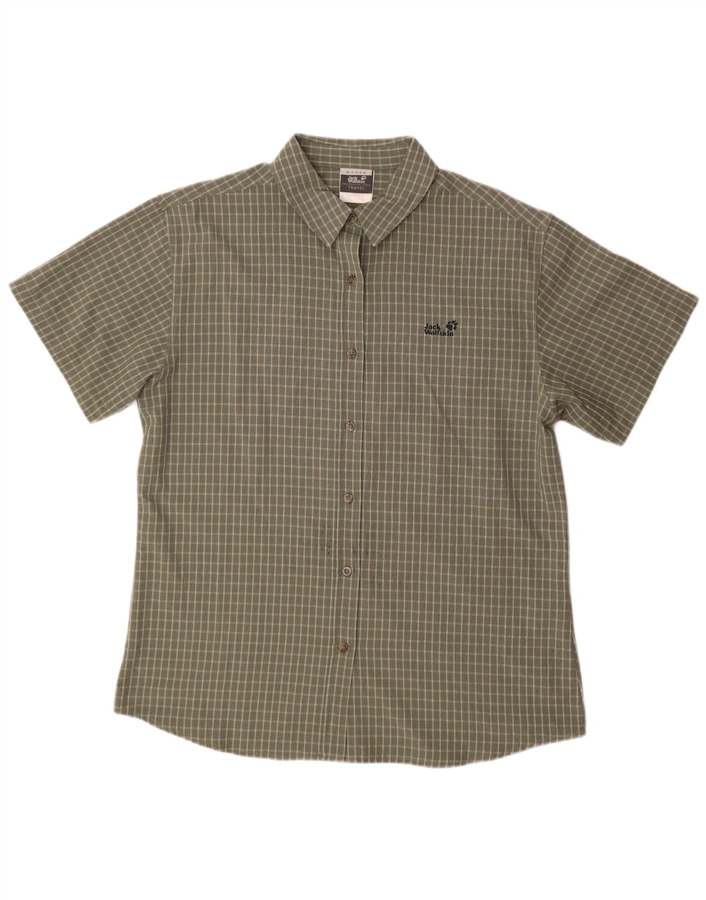 Camisa feminina de manga curta JACK WOLFSKIN Reino Unido 18 XL cáqui xadrez poliéster