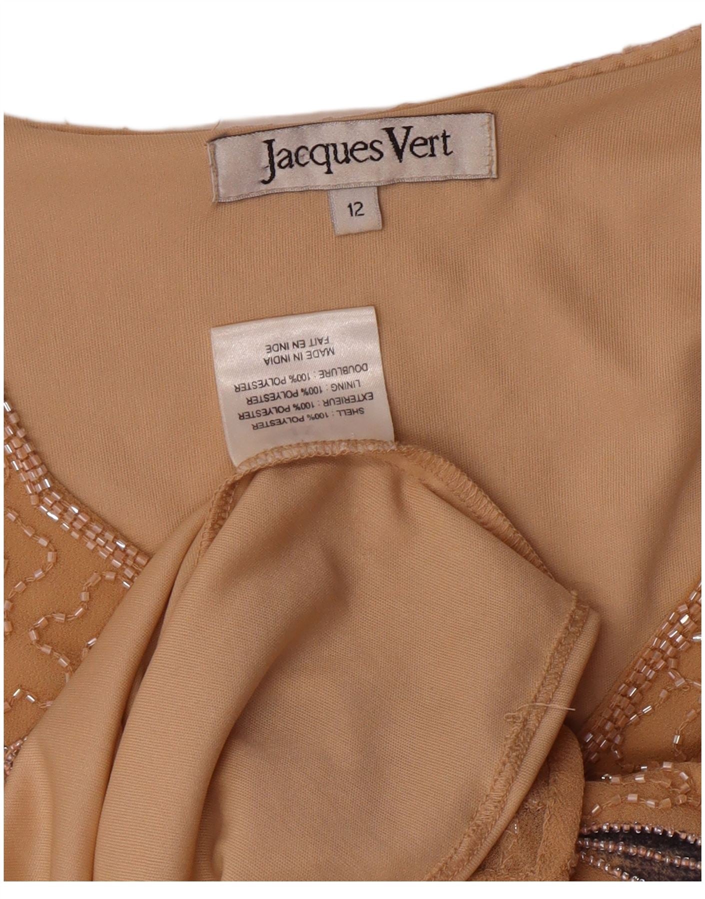 - Descrição da IA: Esta camiseta feminina Jacques Vert apresenta um tecido de poliéster bege. O decote em V e as mangas curtas criam uma silhueta clássica. Um ajuste regular garante conforto e facilidade. O padrão floral é acentuado com miçangas delicadas. As ombreiras adicionam uma estrutura sutil a este estilo clássico e elegante.