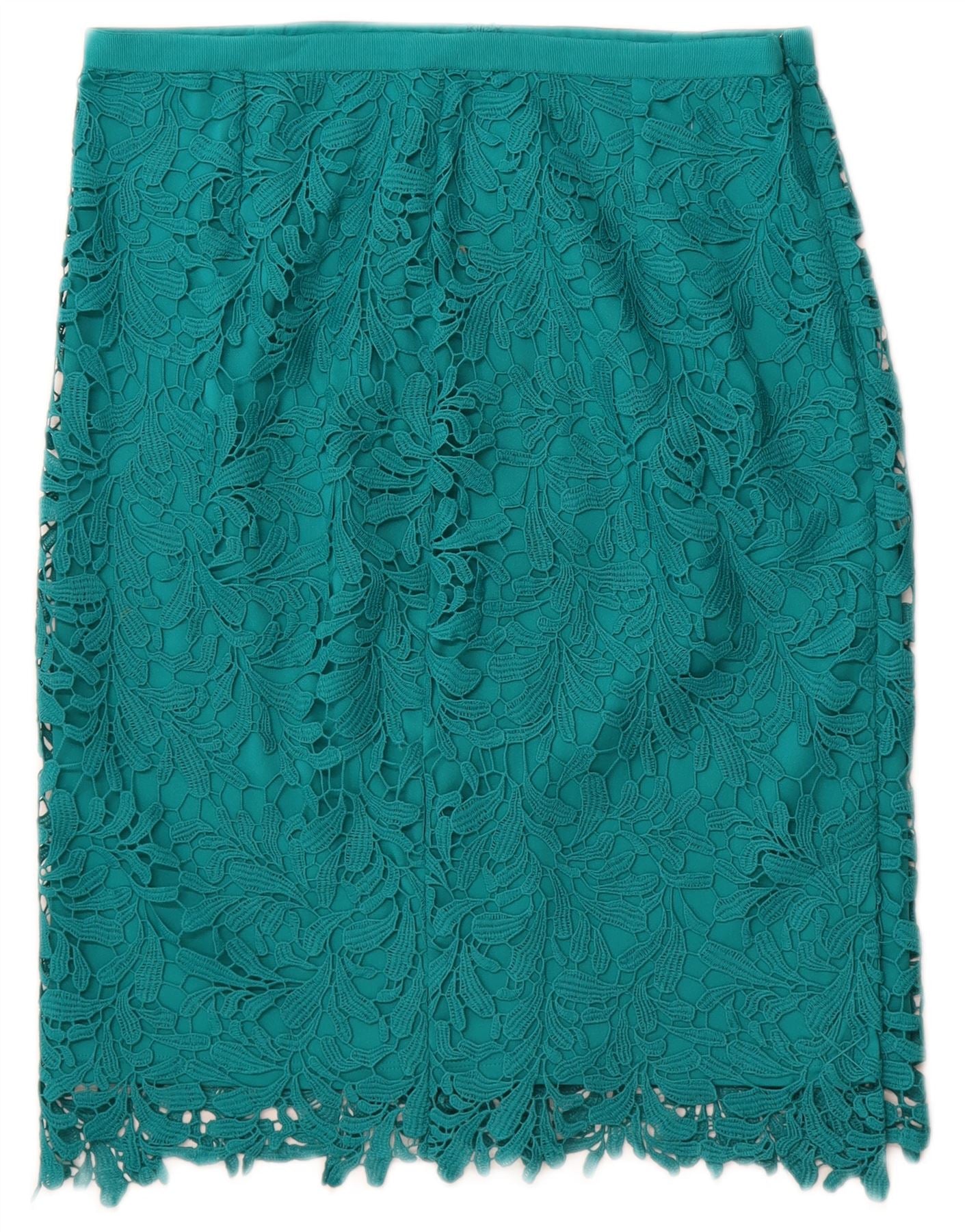 JACQUES VERT Saia feminina pequena reta Reino Unido 12 médio W30 turquesa