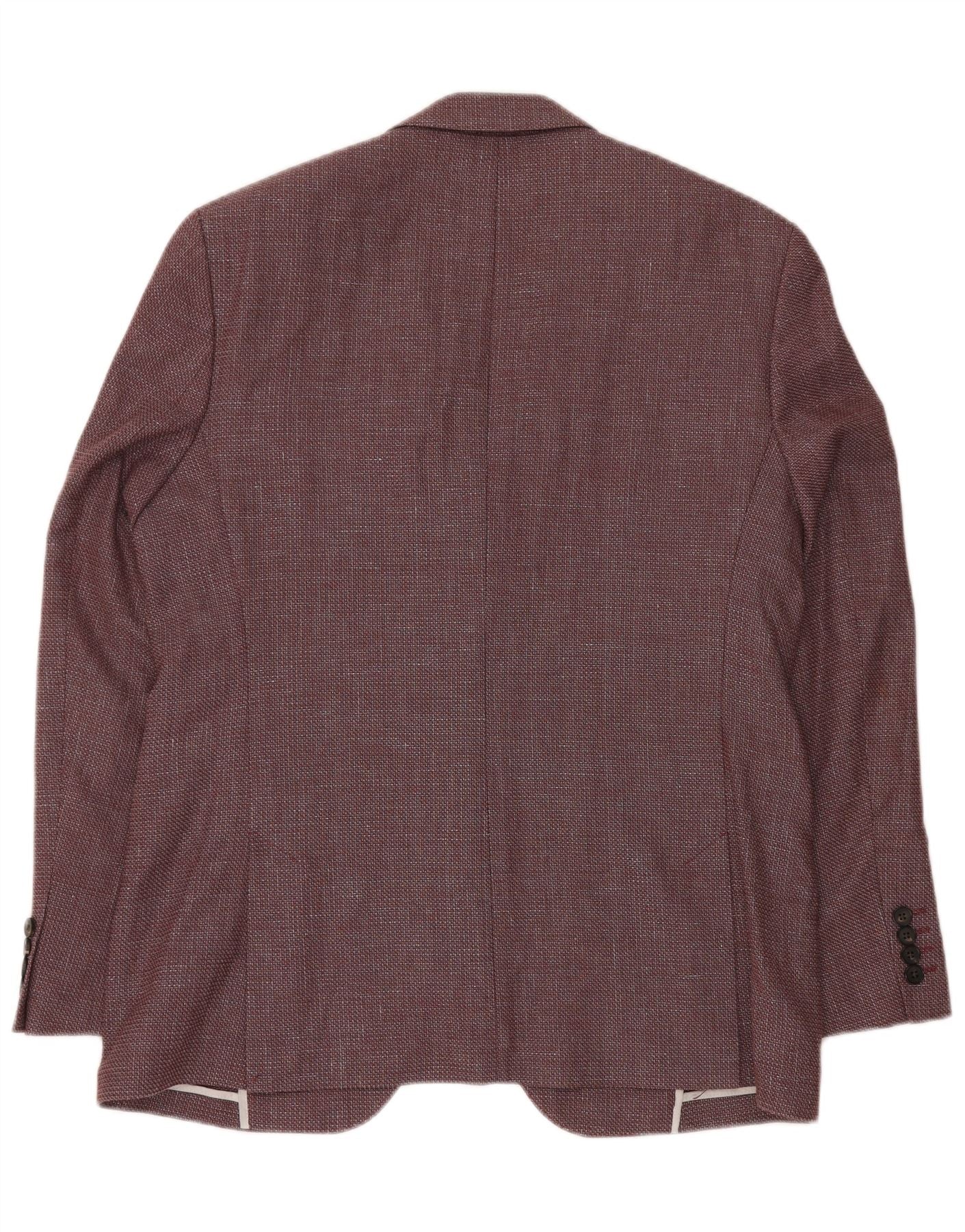 Jaqueta blazer masculina JAEGER com 2 botões Reino Unido 42 XL Borgonha Chevron Lã